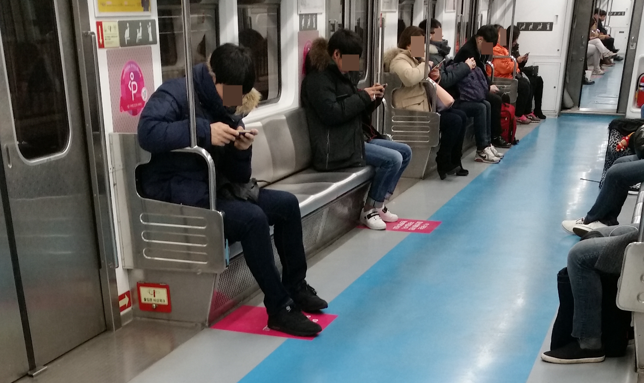 또 사람이 꽉 찬 비좁은 전철 안에서 다리를 꼬고 앉아서, 앞에 서 있는 승객이 그 다리를 피해 일정 공간을 두고 뒤로 물러서 있는 것을 빤히 보면서도, 전혀 개의치 않고 그렇게 앉아 있는 사람들도 종종 볼 수 있다.