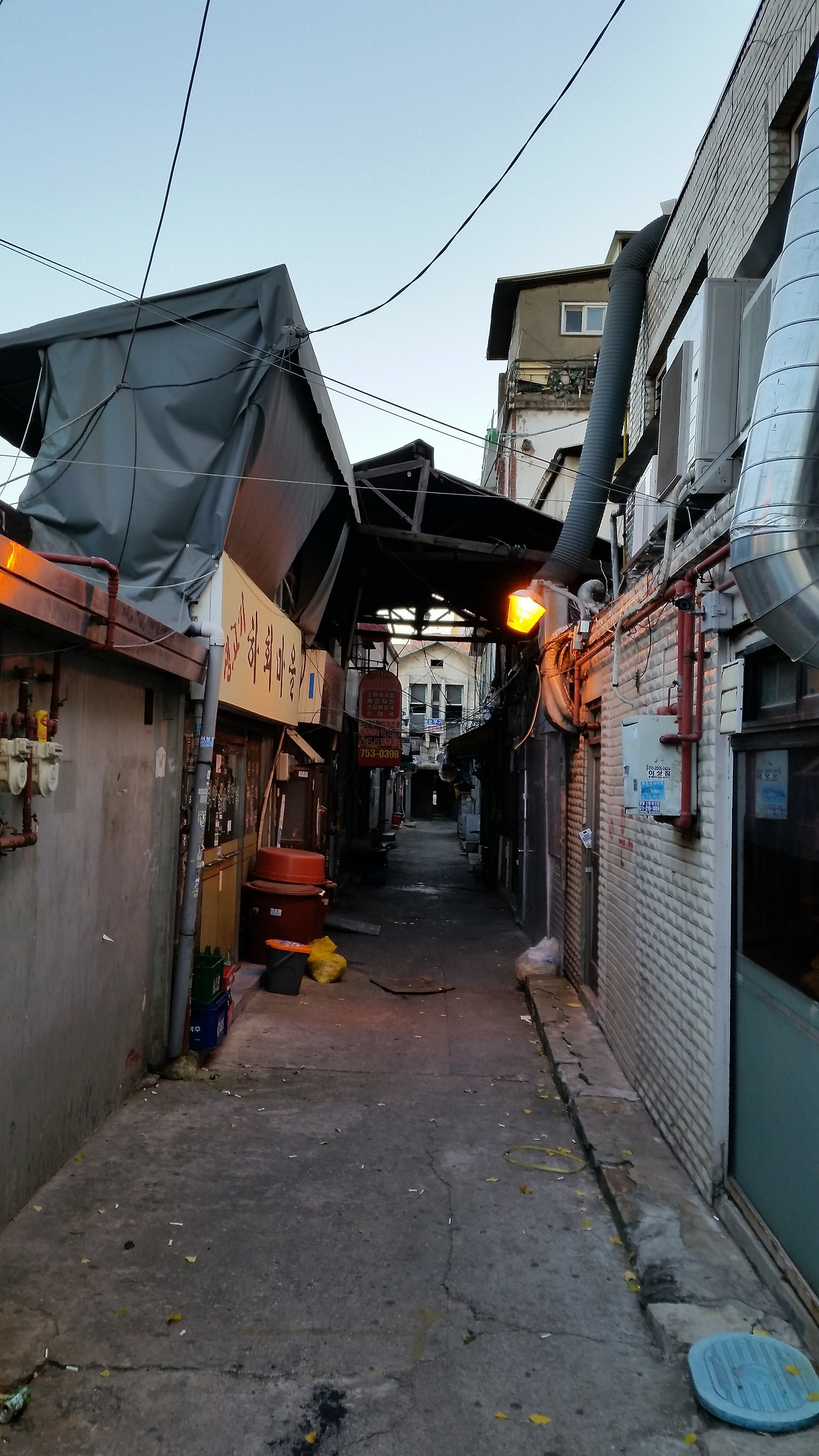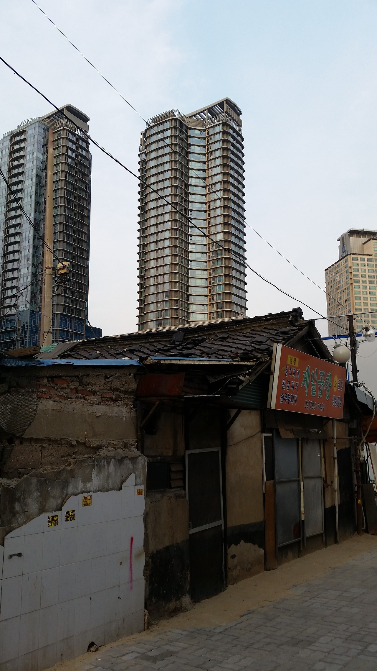 주변은 온통 초고층 건물로 변해 가는데, 그 한가운데 시간을 거슬러 있는 듯한 오래된 골목과 허름한 식당이 여전히 남아 있다. (2016년 6월 사진)