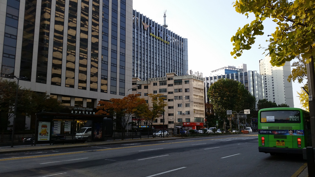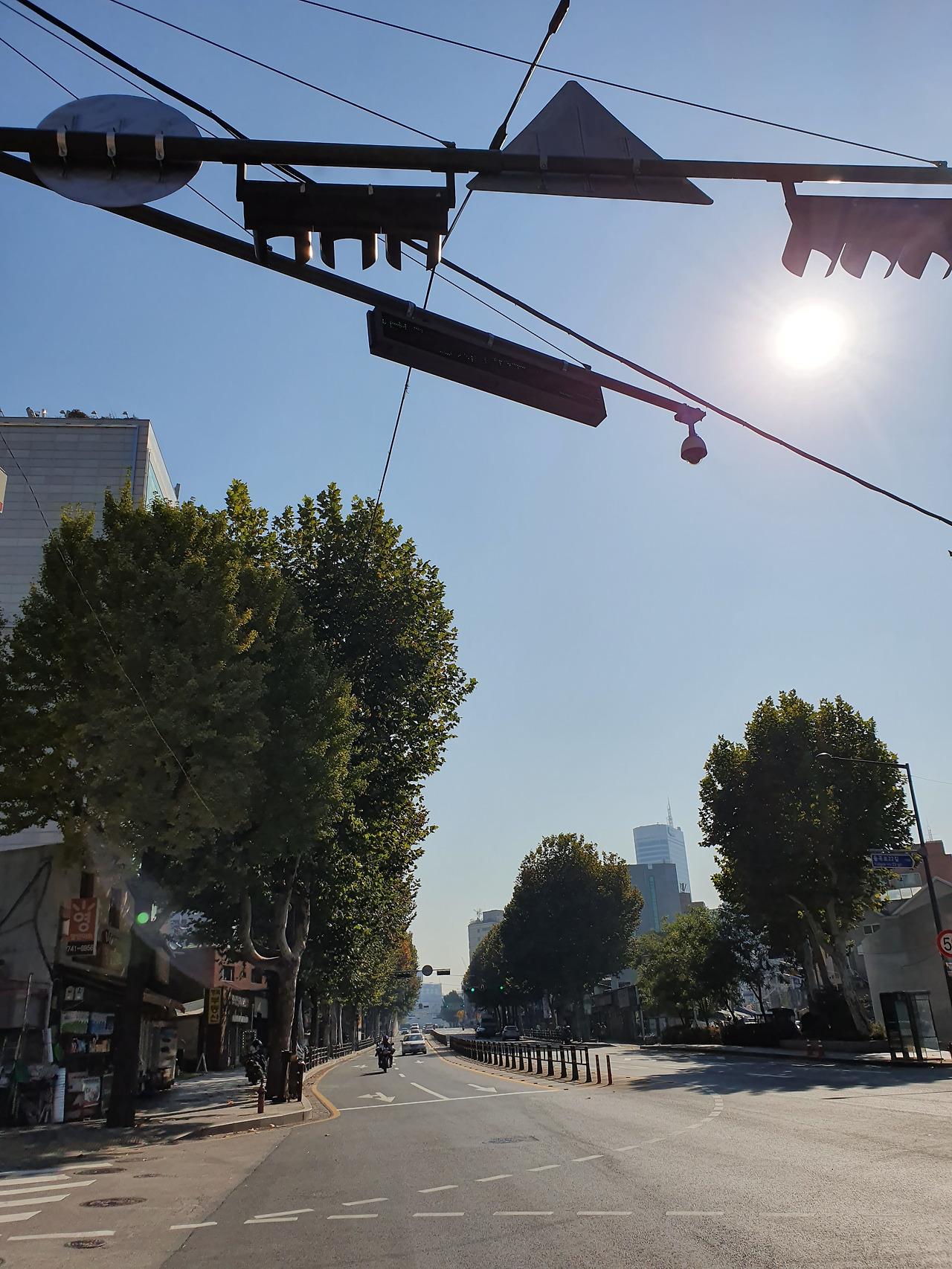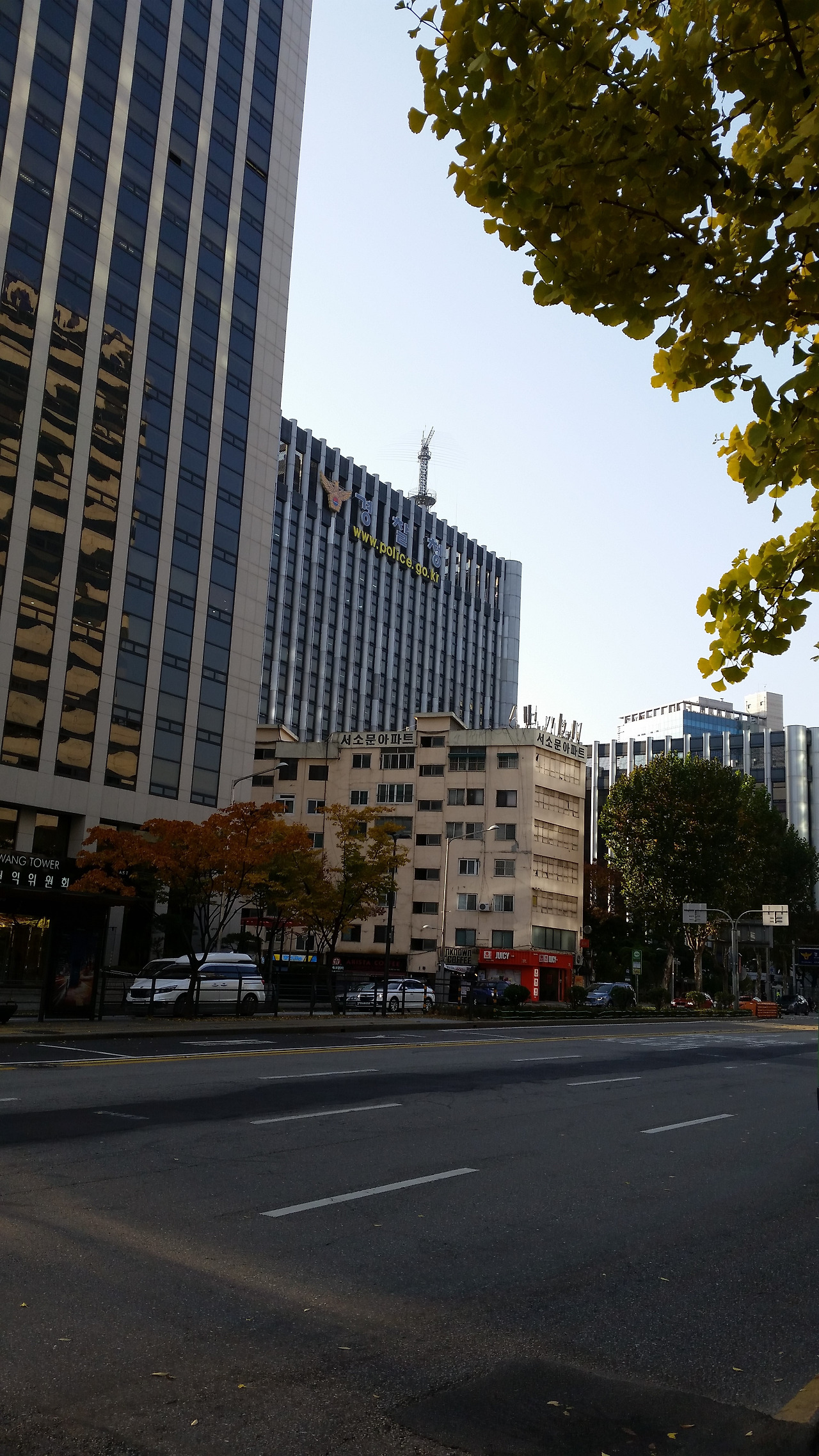 11월이면 이미 초겨울인데 나뭇잎이 아직도 녹색으로 가득하고 꽤 더웠던 날이었다. 서울의 매력 중 하나가 이렇게 녹색이 가득한 가로수가 많다는 점일 것이다. 해외 여기저기 돌아다녔지만 멋진 가로수 길의 매력에서는 서울도 결코 해외 여느 도시에 뒤지지 않는 것 같다.
