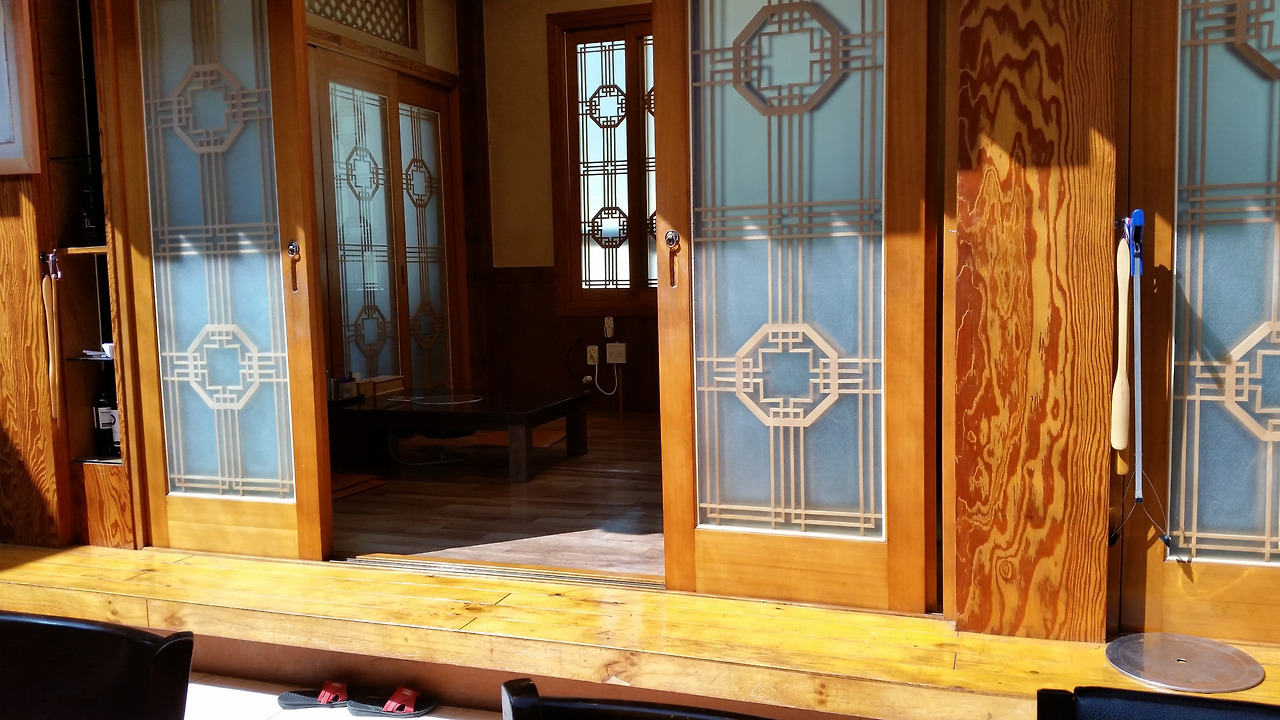 선바위역 '메밀 장터'라는 식당 내부. 초겨울 냉기가 서서히 느껴지는 10월에 찍은 사진인데, 손님도 별로 없는 조용한 한옥 방 안으로 내리쬐는 햇살이 참 서정적이고 따사롭게 느껴지던 모습이었다. (2018년 10월 사진)