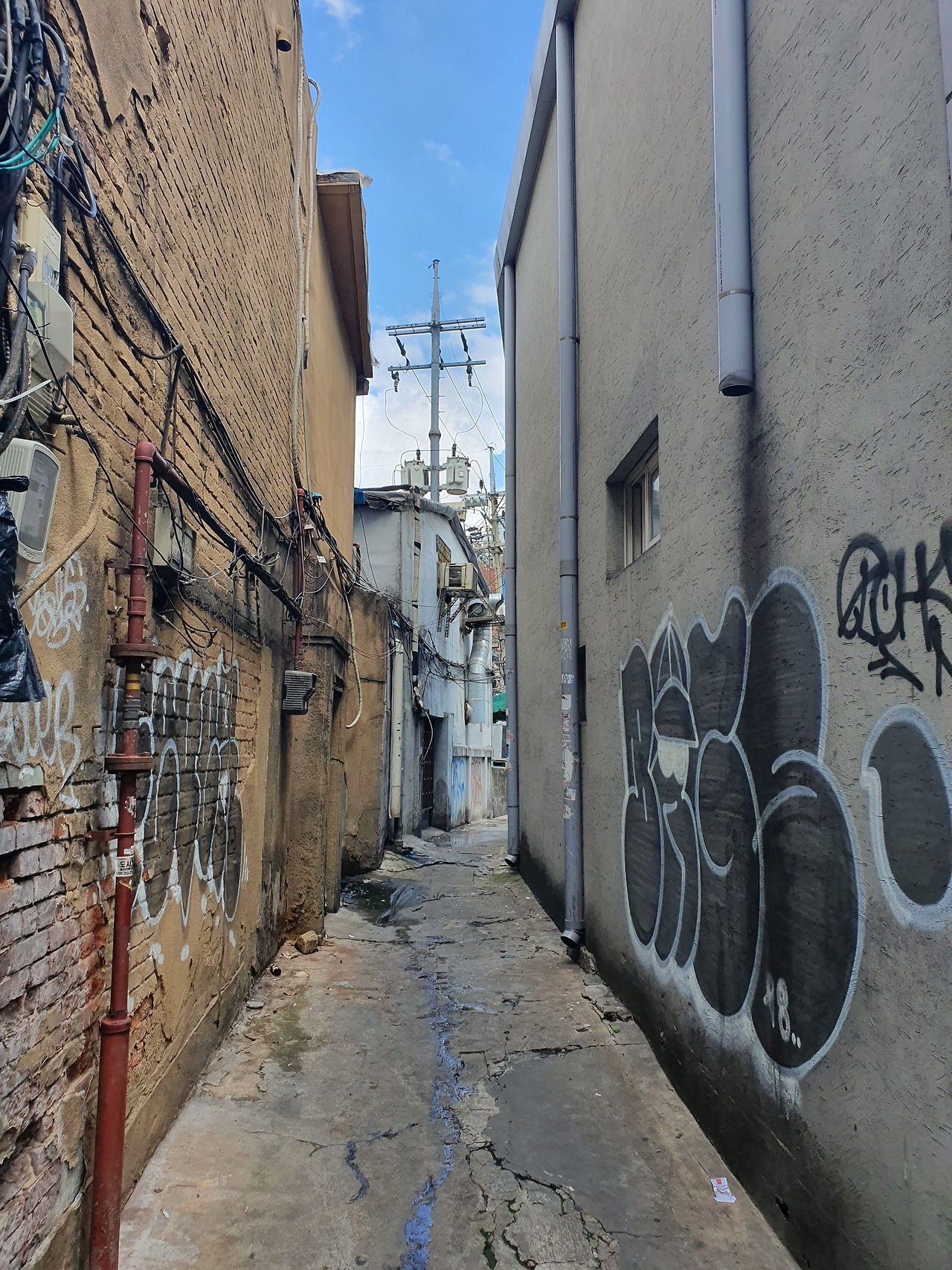 인쇄소가 많은 충무로 거리 일대도 서울의 과거 모습이 그대로 남아 있는 곳 중 하나인 것 같다. 그 근처를 지나다 좁고 오래된 골목길이 보여 찍은 사진이다. (2019년 7월 사진)