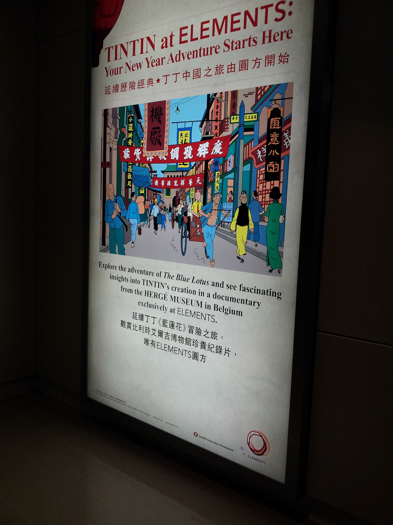 홍콩에 거주할 때도 내가 거주하던 아파트 단지에서 우연히 '땡땡'이 등장하는 홍보물을 본 적이 있어 역시 사진으로 담아 두었던 적이 있는데 그때 찍었던 사진이다. '땡땡'이 홍콩을 여행하는 모습이다. (2012년 1월 사진)
