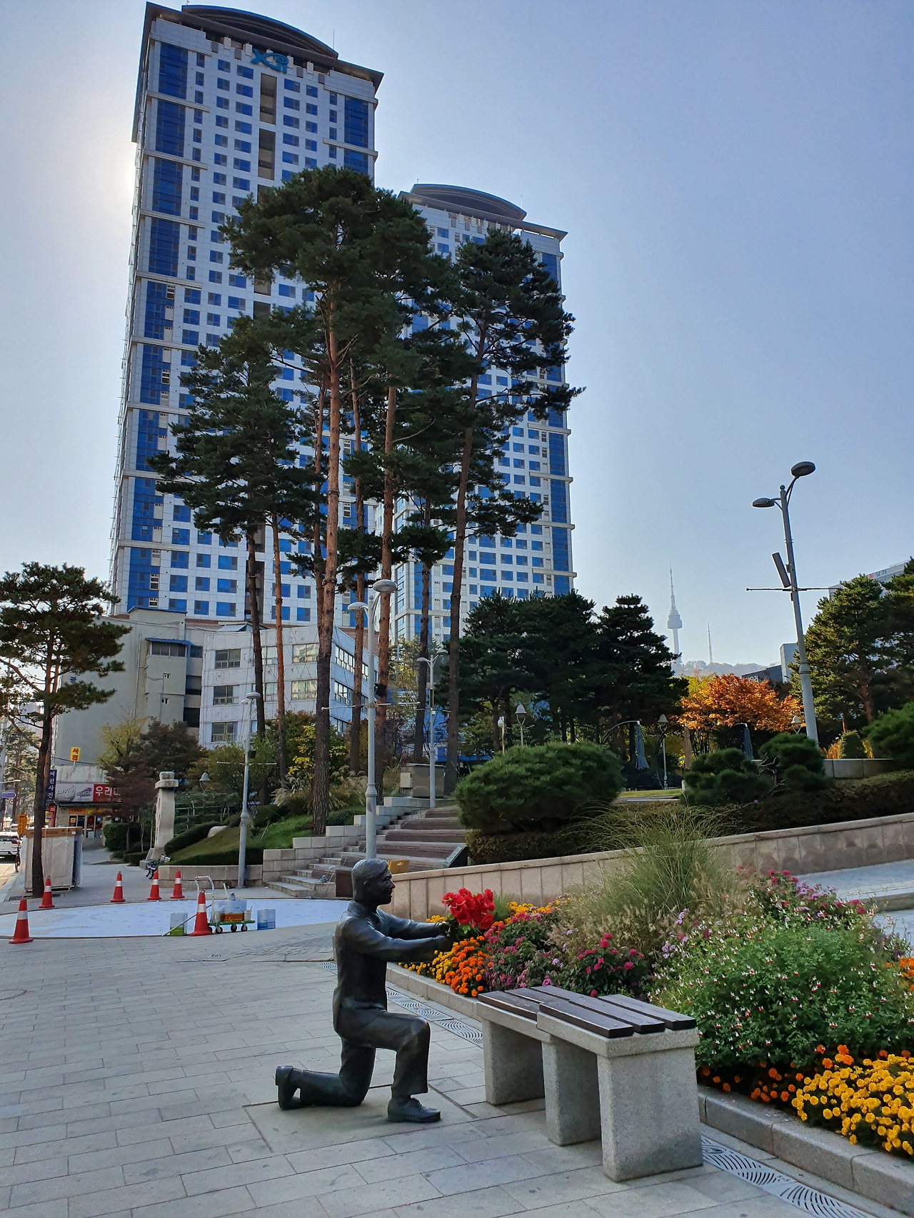 이 작품은 서울 중구청 앞에 있는 작품으로 누군가에게 구애를 하는 남자의 조각상이다. 2019년 11월에 찍은 사진인데, 거리뷰를 보니 2020년 2월 기준으로도 저렇게 계속 무릎 꿇고 같은 자리에서 구애를 하고 있다. 그런데 재미있는 것은 거리뷰에 등장하는 이 조각품의 얼굴도 주변을 지나는 행인들의 얼굴처럼 모자이크 처리되어 있었다......