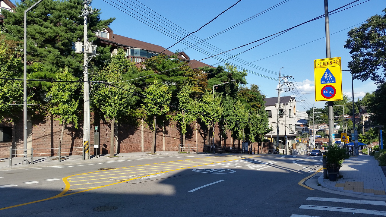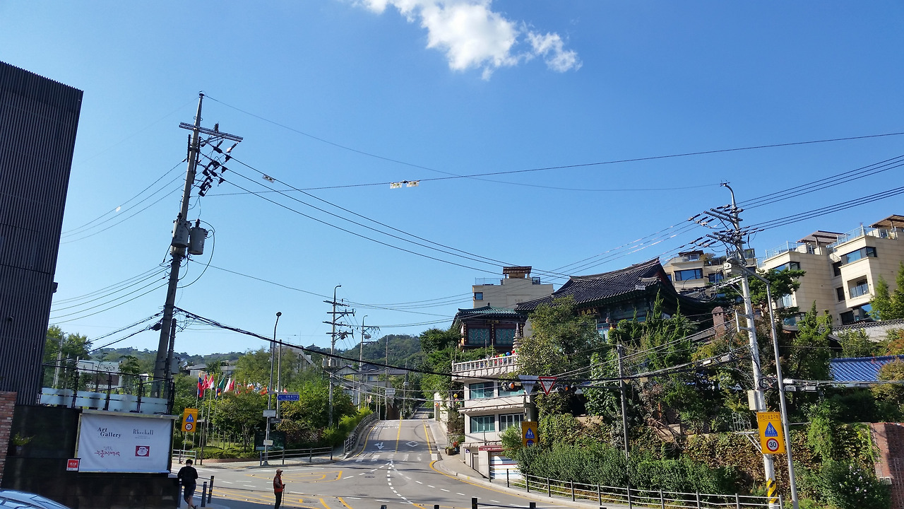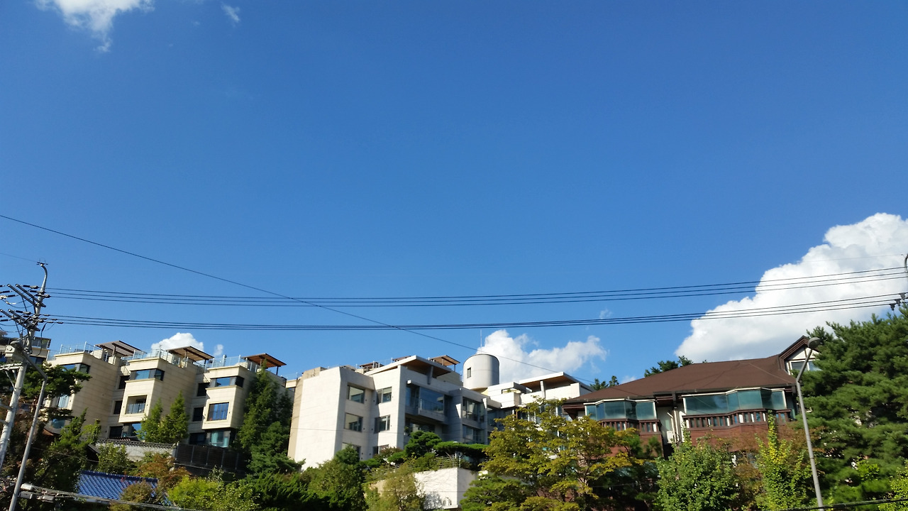 성북동을 방문했던 때는 초가을이었는데, 날씨가 매우 좋아 사진에서 보는 것처럼 너무도 새파란 하늘을 볼 수 있었다. 사진에 보이는 하얀색 건물들은 '성북 힐즈'라는 빌라 단지였는데, 꽤 비싸 보였다.