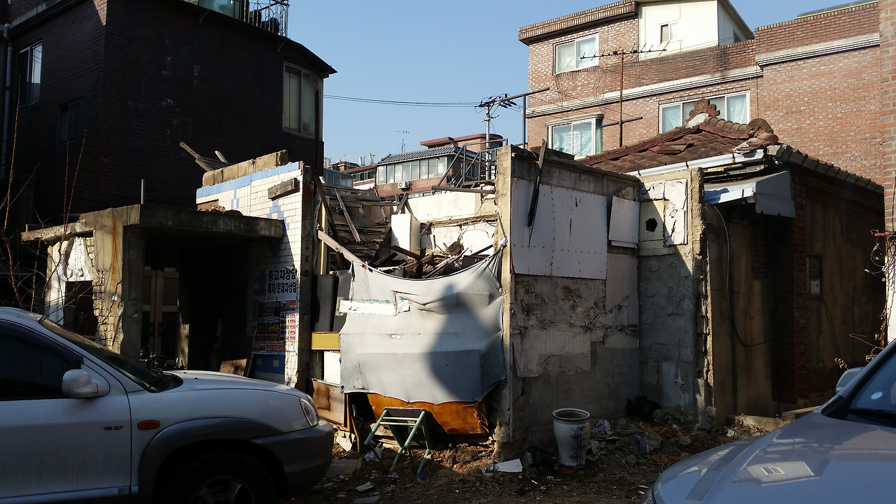 이미 철거가 시작된 건물도 있었다. 어쩌면 이 주택에도 한때는 하숙생이 있었을지도 모르겠다. 멀리서 온 하숙생의 서울 보금자리였고 또 어느 한 가정이 오손도손 살았던 그런 공간이었을 텐데, 이제 이미 반쯤 폐허로 변해버렸고 조만간 그마저도 완전히 사라질 것이다. (2015년 1월 사진)