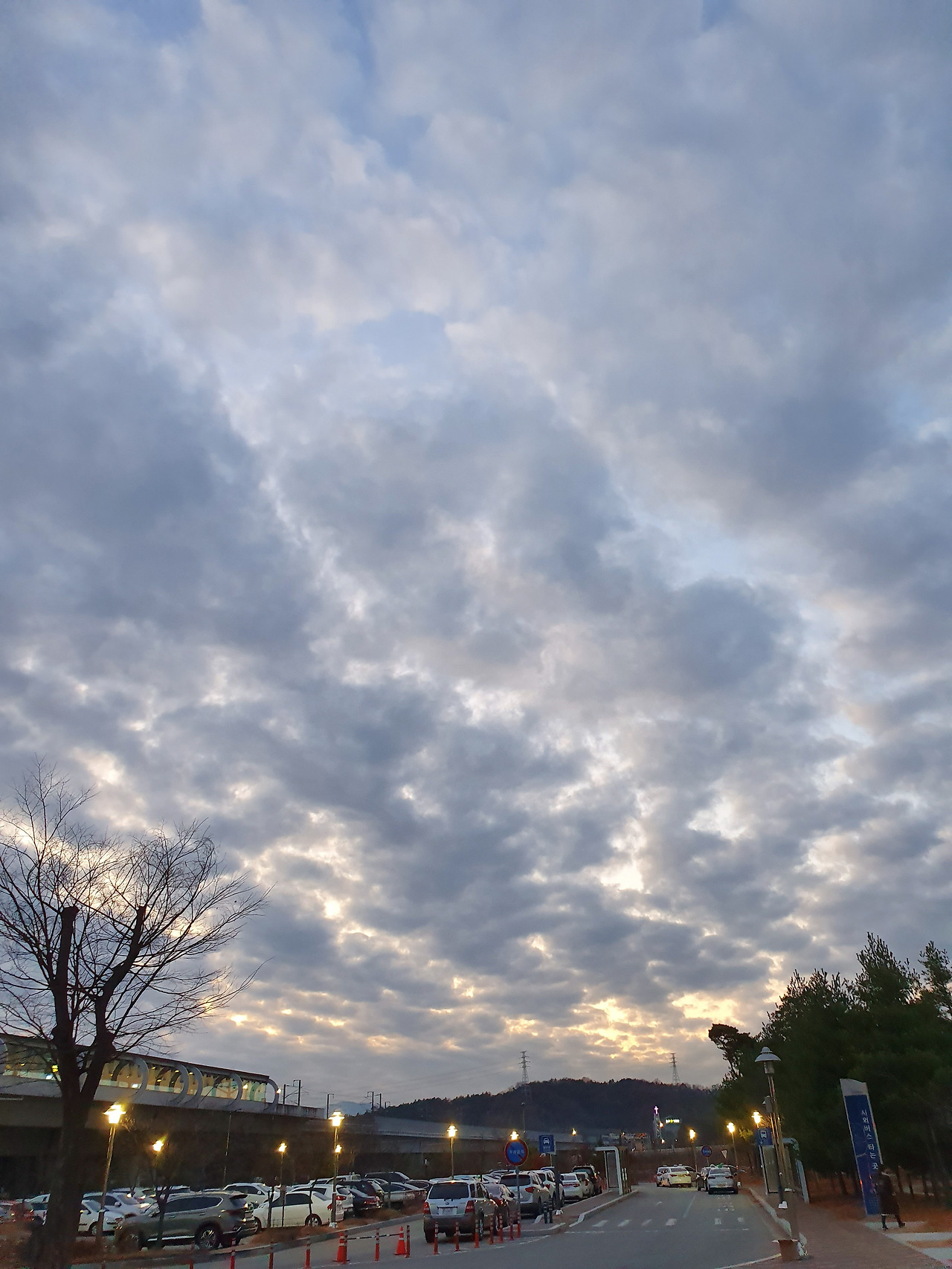 김천구미역 주차장에서 바라본 저녁노을이 지는 하늘 모습 (2019년 11월 사진).