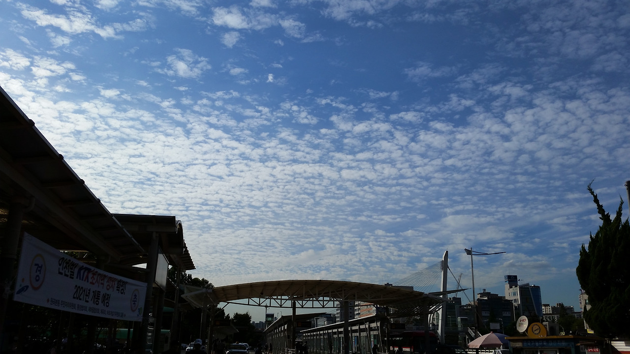 안산에는 또 러시아어를 사용하는 중앙아시아 국가 출신 외국인도 적지 않은데, 우리 동포인 고려인들도 안산 '땟골 마을'이라는 곳에 밀집되어 거주한다. 그 '땟골 마을'을 몇 차례 방문했던 적이 있는데, 위 사진은 그때 전철을 타고 안산역에서 내리면서 마침 그날 안산역 인근 하늘과 구름이 너무 멋져 찍었던 사진이다. (2016년 8월 사진)