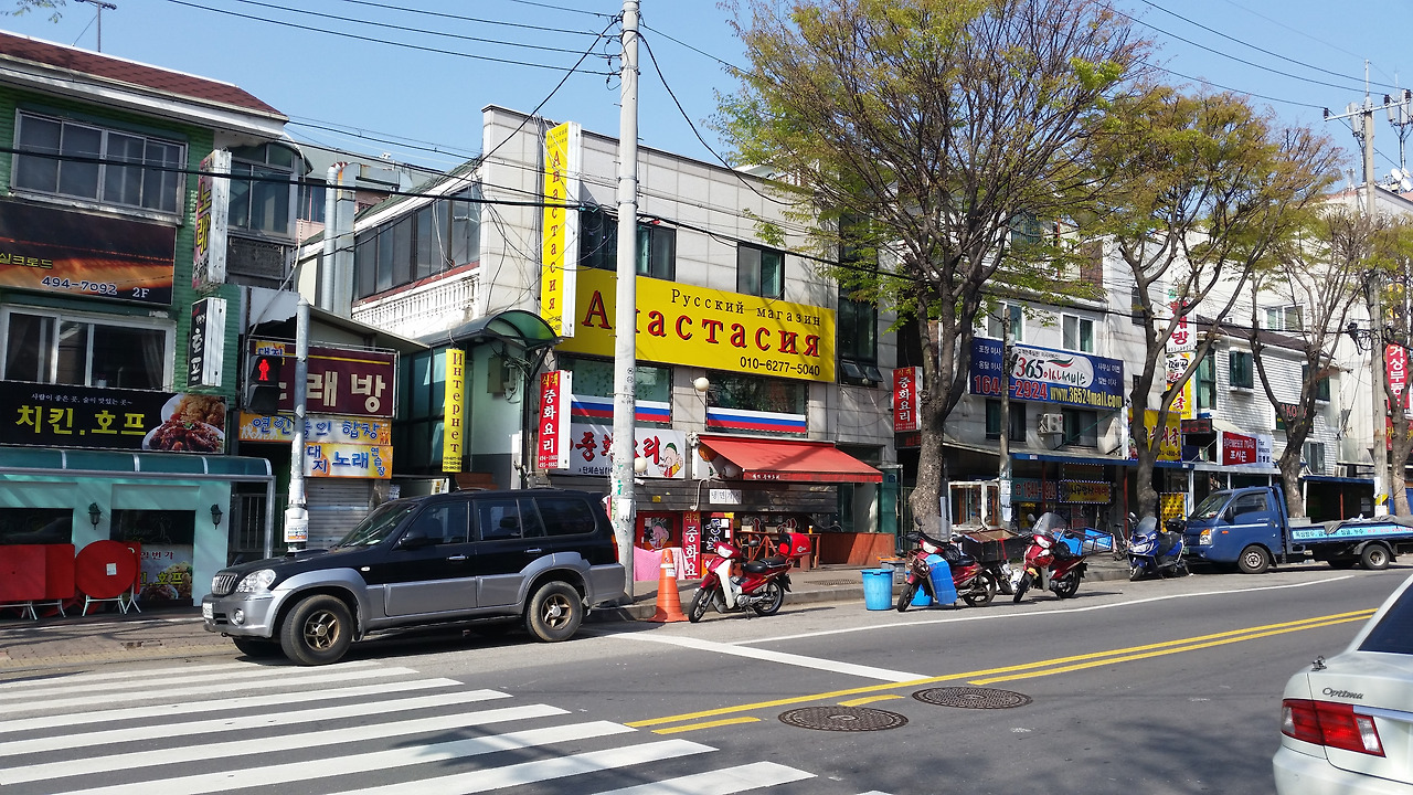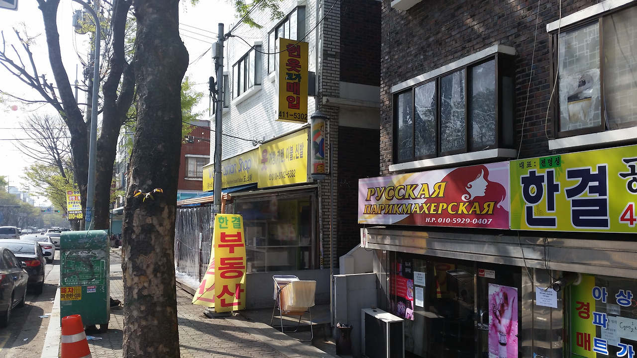 고려인들이 모여사는 안산 '땟골 마을' 거리 및 상점 모습. (2016년 4월 사진). 평일 낮이라 그런지 사람들이 대부분 일터로 나가 동네는 인적도 드물고 조용했다.