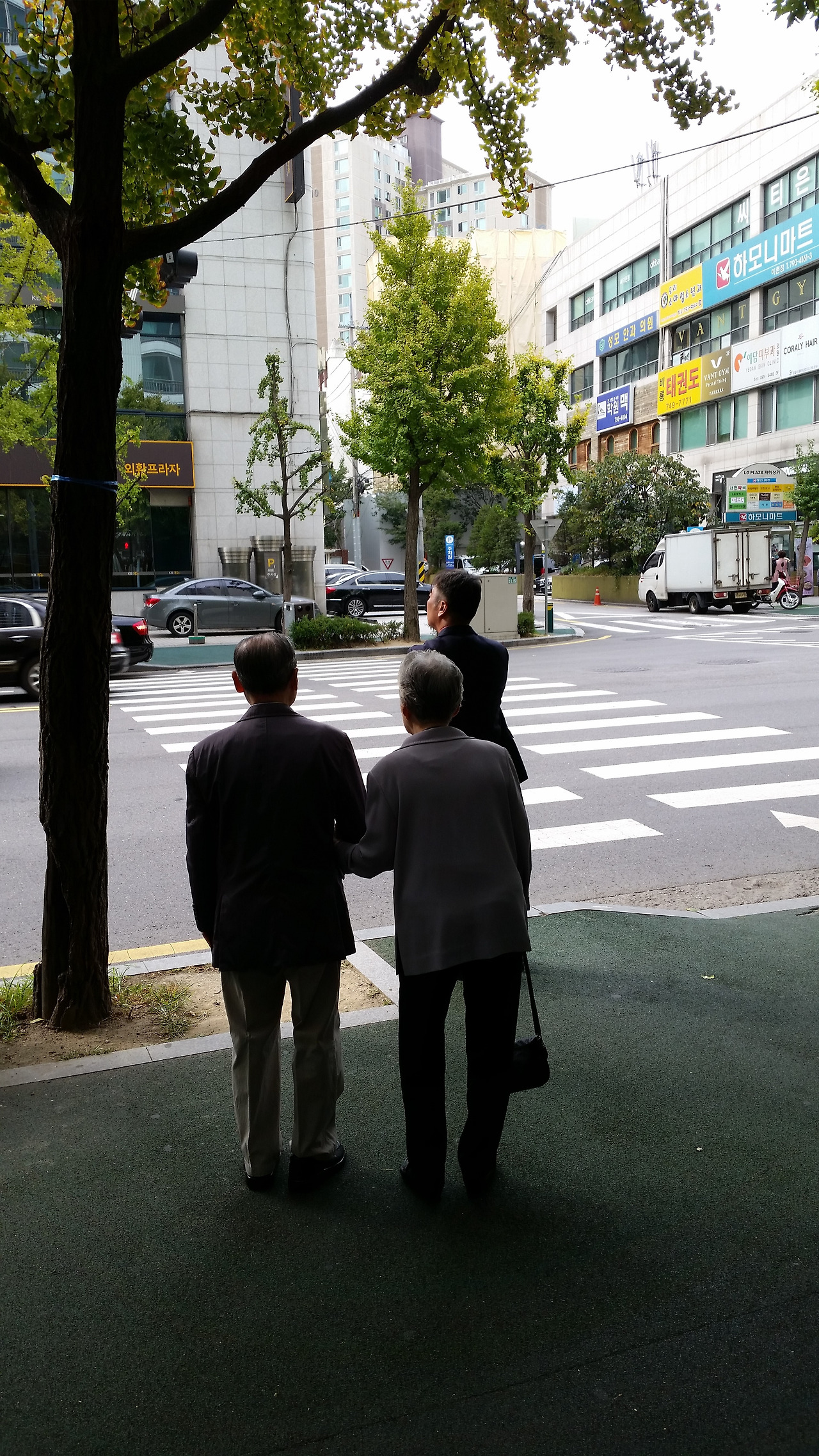 이촌동 국민은행 앞에서 찍은 사진. 역시 할아버님보다는 할머님 허리와 다리가 많이 굽으신 것 같다. (2016년 10월 사진)