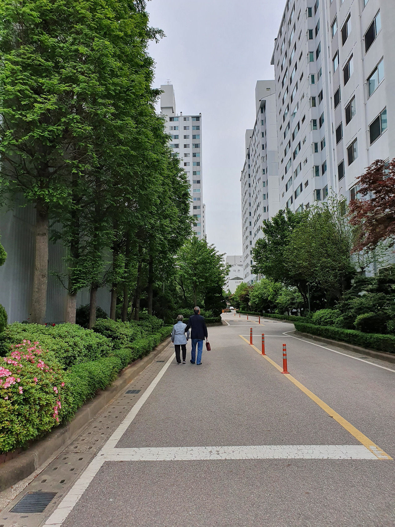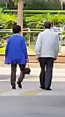 이촌동 이촌아파트 104동 앞. 할아버님께서 할머님을 살짝 부축해 주며 걸으시는 모습. 할머님의 거동이 좀 불편해 보이신다. (2020년 5월 사진)