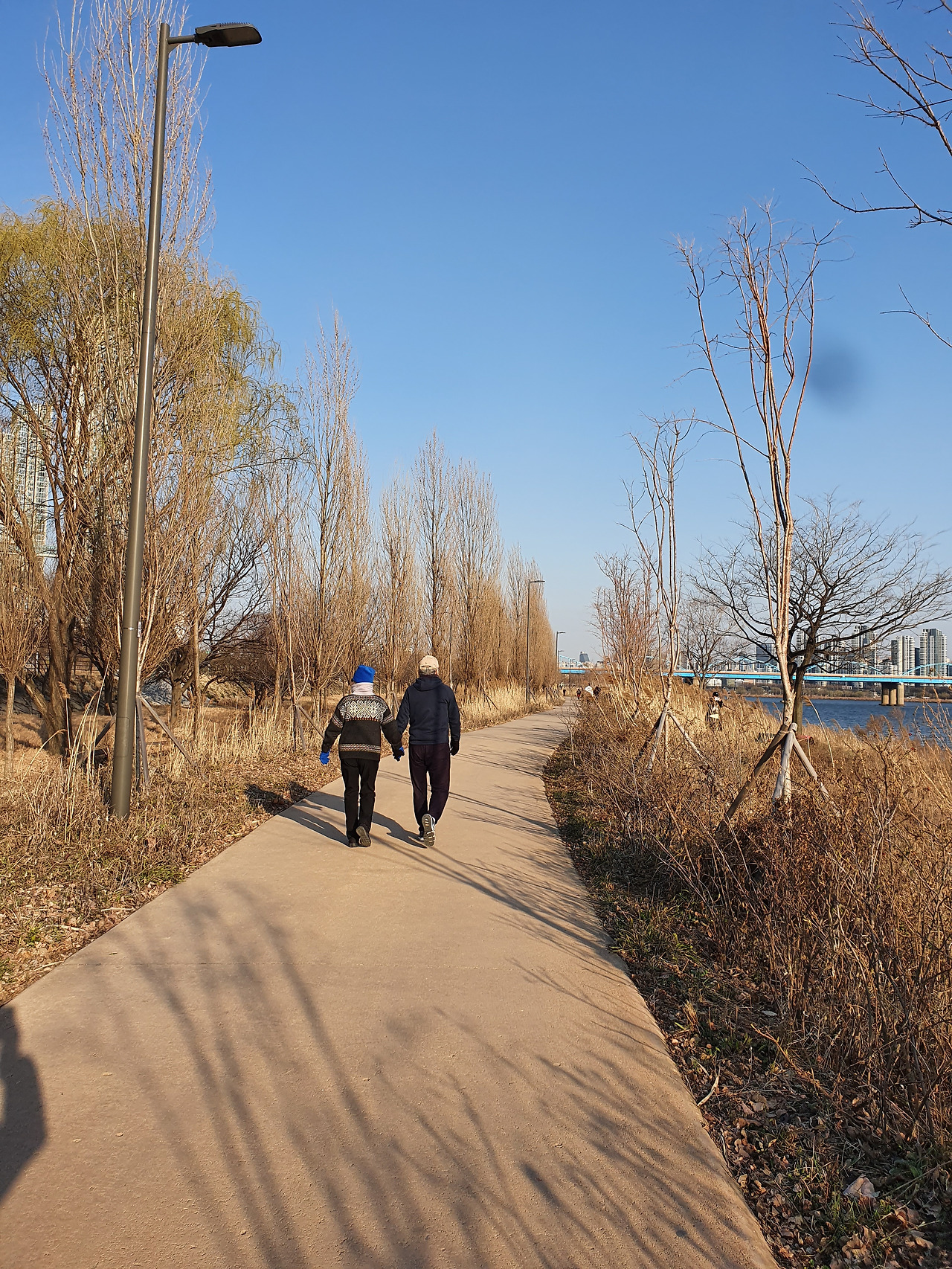 마찬가지로 한강 고수부지에서 찍은 사진. 복장을 보면 두 분 모두 꽤 멋쟁이신 것 같고, 걸음도 비교적 활발하게 걸으셨던 것 같다. 앞에 있는 사진에 계신 어르신분들 보다는 좀 젊으신 것 아닌지 모르겠다. (2020년 3월 사진)