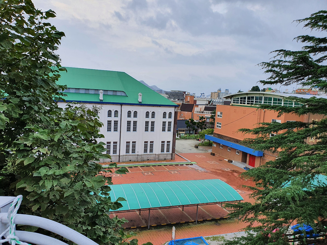 유달 초등학교라는 학교도 볼 수 있었다. 그런데 학교 안에 있는 건물의 디자인이 꽤 고풍스러워 보여 검색해 봤더니 역시 이 초등학교는 1898년 당시 목포에 거주하던 일본인 학생들을 위해 설립된 오래된 학교로 그 역사가 122년이나 되는 학교였다. 사진에 보이는 저 특이한 디자인의 건물은 강당으로 사용되는 건물인데 1929년에 건축되었다 한다. 90년이 넘는 역사를 가진 강당인 셈이다.