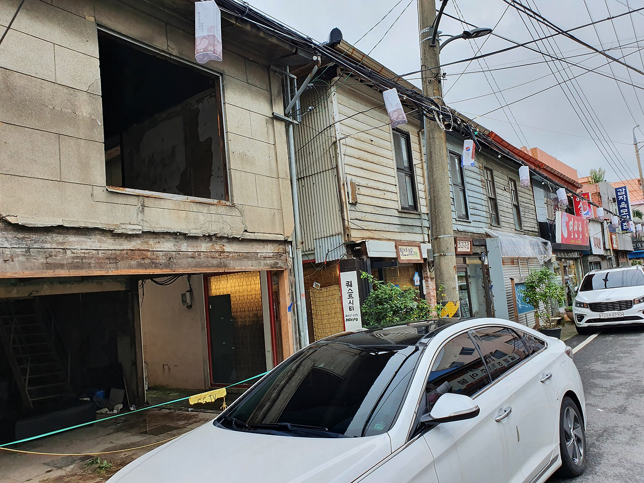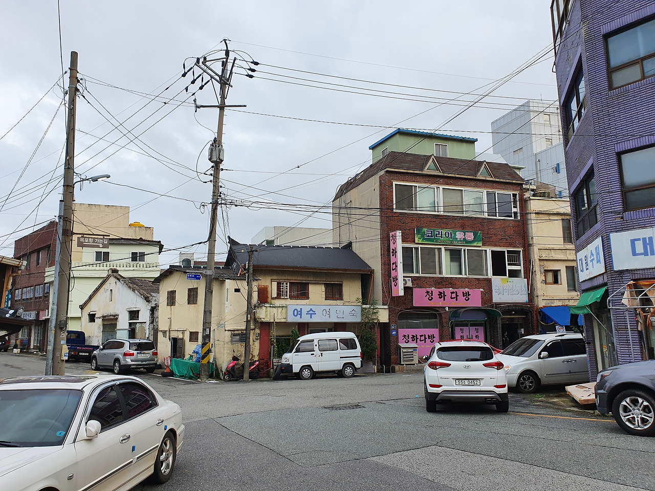 '여수 여인숙'이라는 흐릿한 간판이 붙은 오래된 건물도 볼 수 있었다. 건물 분위기가 일본풍 주택으로 보이는 것으로 봐서 일제 강점기 시절 지어진 건물 아니었는지 모르겠다. 이 건물 좌측에도 두 채의 건물이 있었는데 역시 꽤 기나 긴 세월을 버텨온 건물로 보였다. 여인숙 바로 옆의 '청하'라는 간판의 다방도 예전 80~90년대 추억 속 다방을 다시 보는것 같은 그런 느낌이었다.