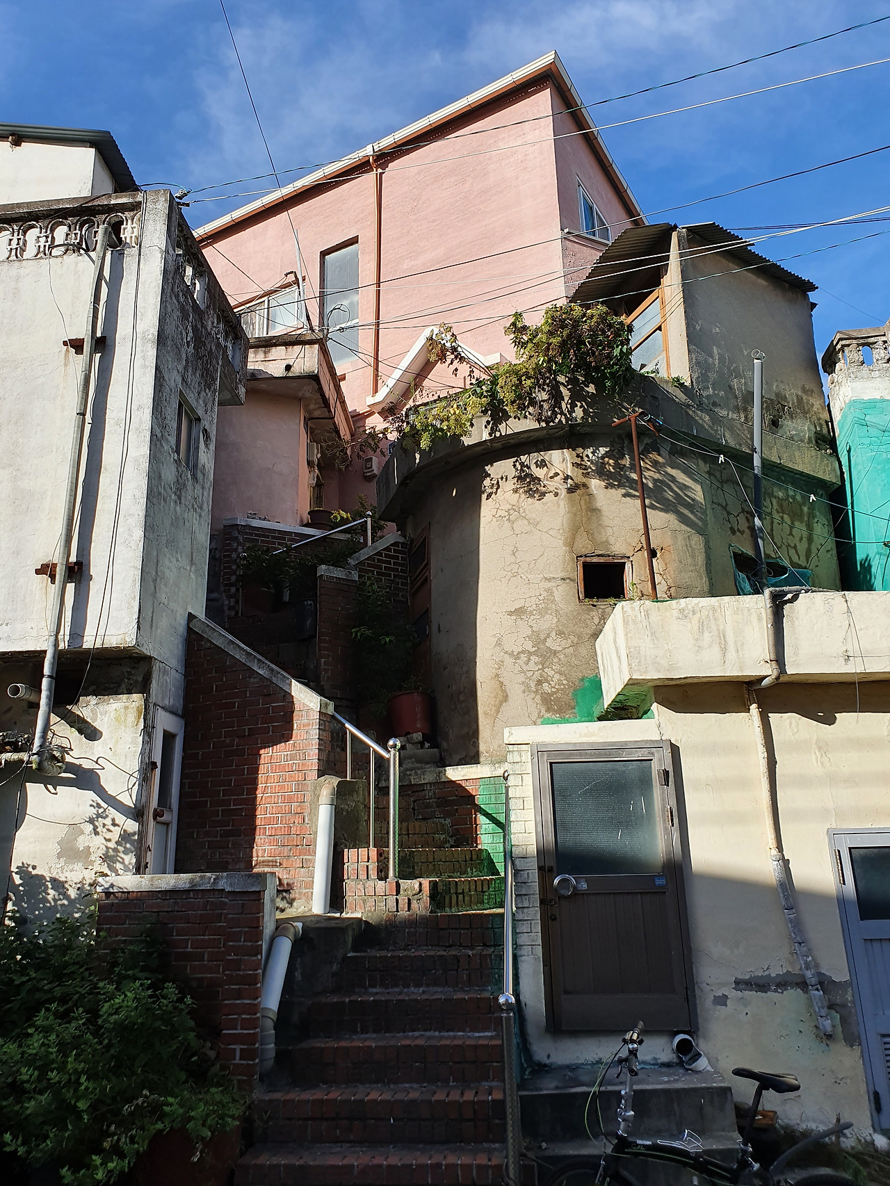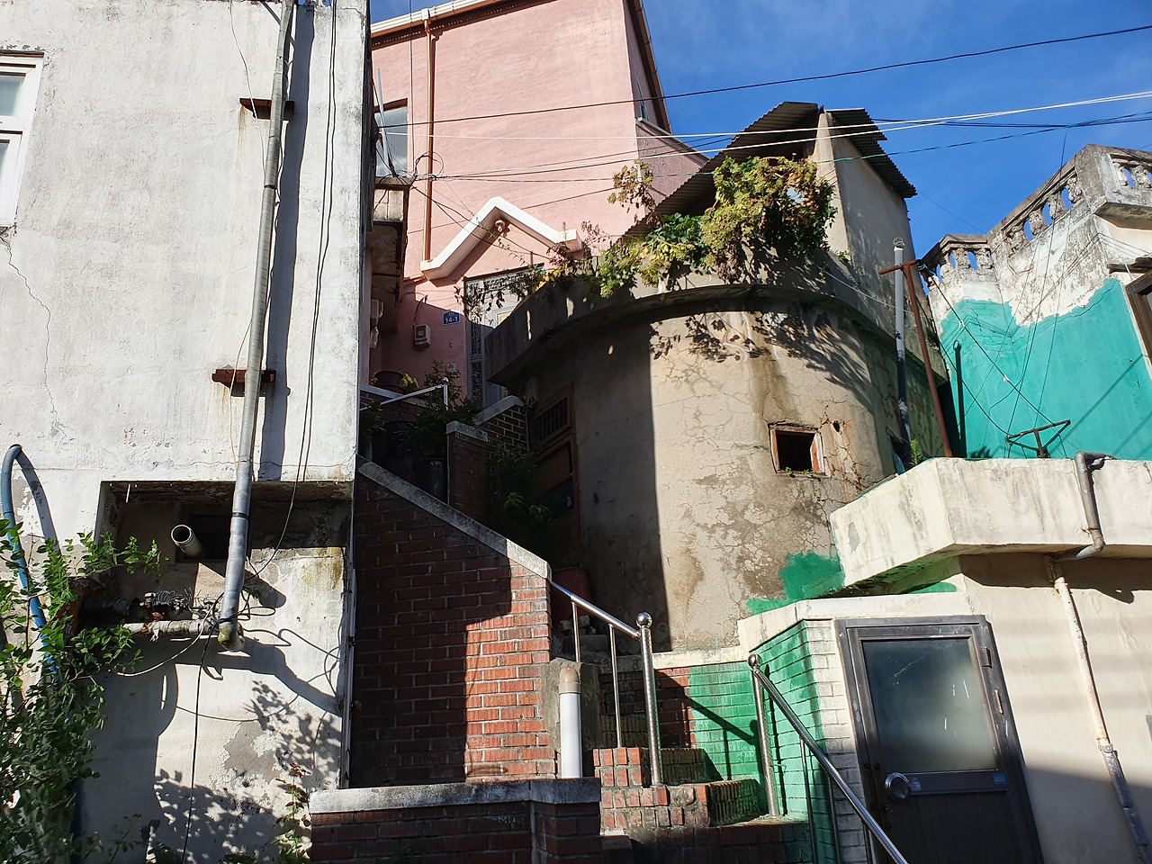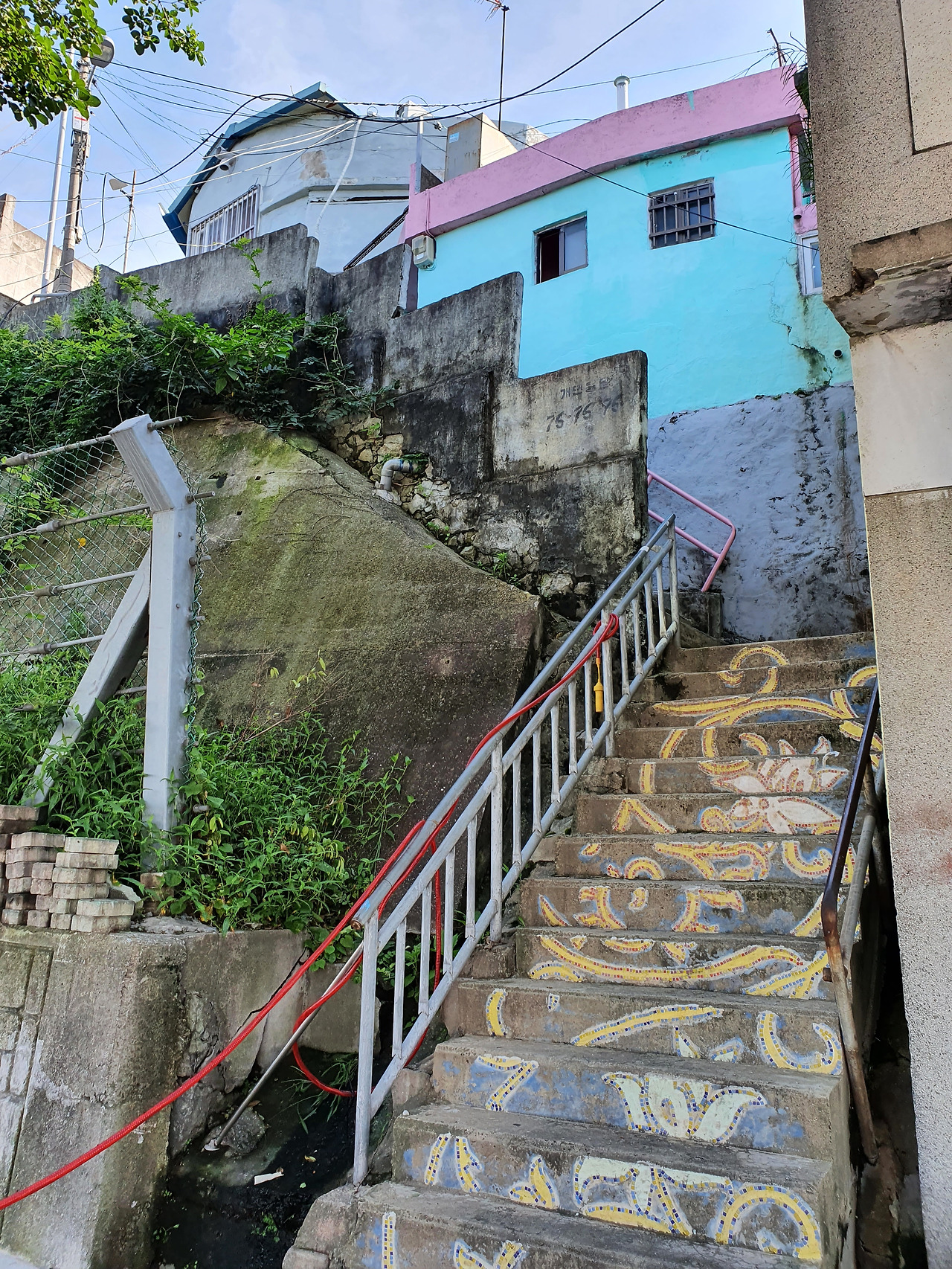 걷다 보니 분홍색으로 지붕을 칠하고 하늘색으로 벽을 칠한 꽤 눈에 띄는 아담한 주택도 볼 수 있었다. 그런데 이 주택은 올라가는 계단까지도역시 특이한 도안으로 꾸며져 있었다. 집과 계단 모두그렇게 정성스럽게 꾸며져 있는 것을 보니 집주인의 애틋한 심미안도 함께 느껴지는 것 같았다.