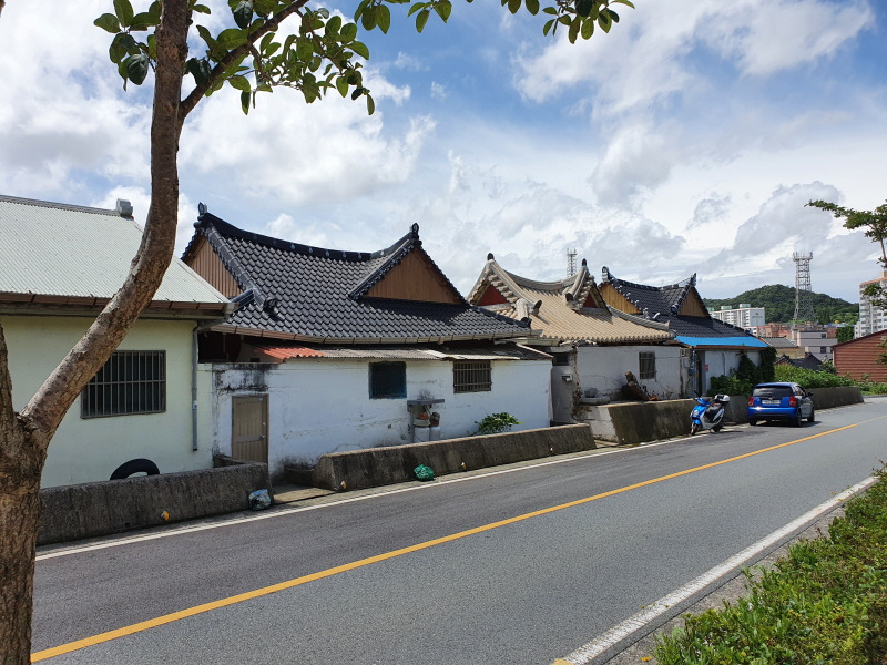 목포대에 점차 가까워지자 아래 사진에서 보는 것처럼 온통 하늘색으로 벽을 칠한 주택도 보였고, 또 일본풍 구조인지 잘 모르겠지만 어쨌든 이전에는 보지 못했던 특이한 지붕을 가진 주택도 볼 수 있었다.