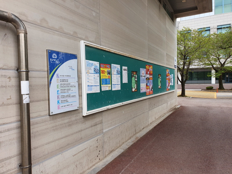 캠퍼스를 음미하며 천천히 걷다 보니 유난히눈에 끌렸던 것이 하나 있었다. 바로 아래 사진에 보이는 게시판이었다. 왠지 이 게시판을 보고 있다 보니 아득한 과거 80년대 대학 시절로 돌아가서 이문동 외대 캠퍼스에서 비슷한 게시판을 보고 서 있던 20대 학창 시절의 내 모습으로 되돌아가는 것 같은 기분이 들었던 것이다.