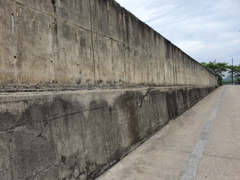 사진) 일로역 앞 주차장을 둘러싸고 있는 담.