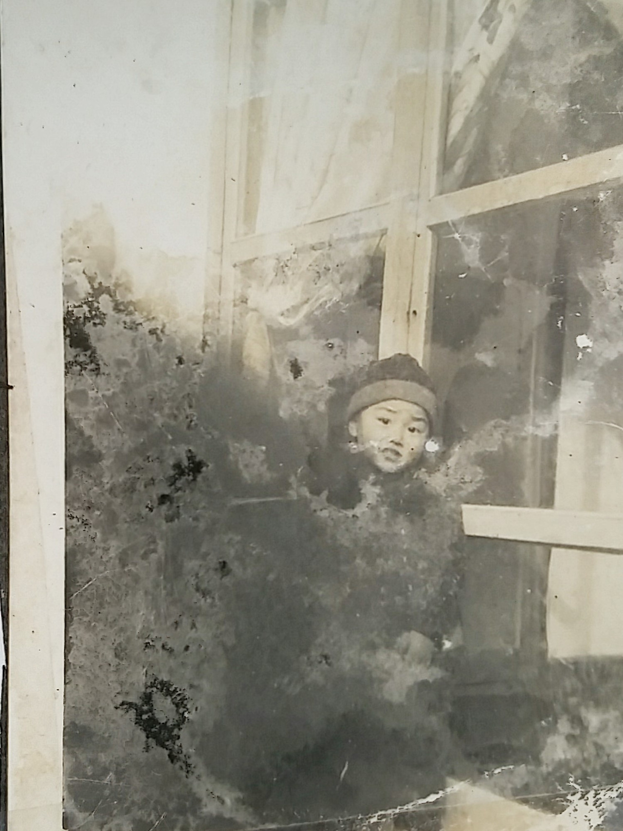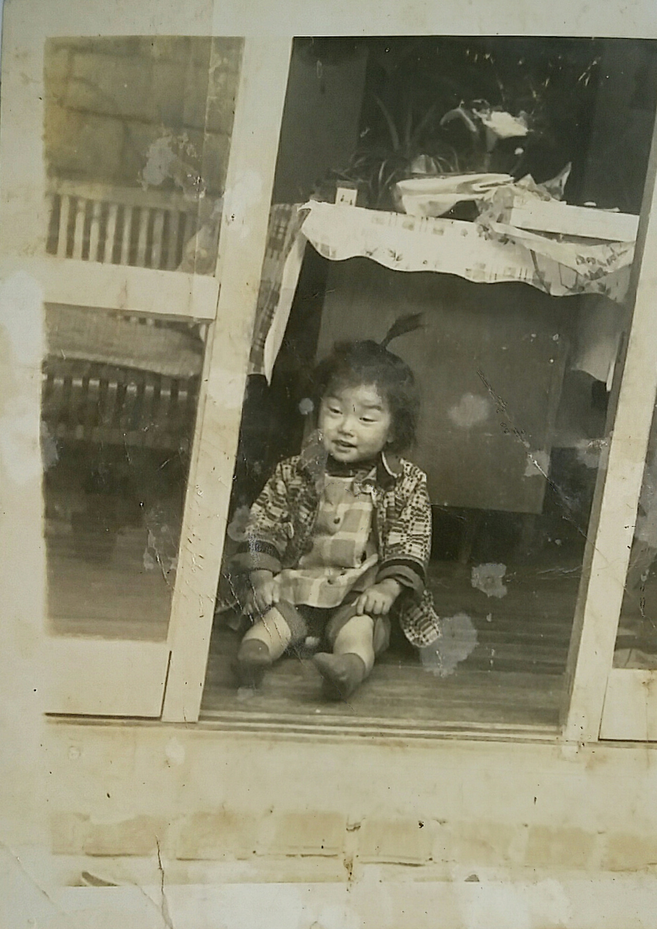 사진) 거실 유리문 앞에서 찍은 누님 사진. 한국인 대다수가 경제적으로 어렵던 시절인 60년대 초반의 모습이라 그런지 입고 있는 옷이 꽤 낡아 보인다.