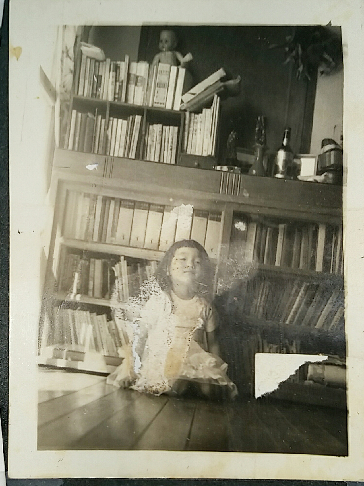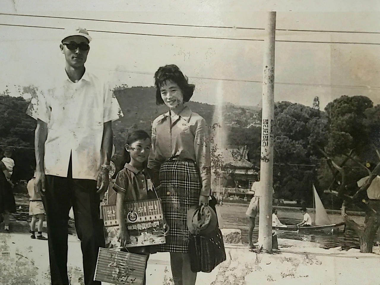 사진) 거실에서 찍은 누님 사진인데, 누님 뒤 벽에 책이 꽤 많다. 아버님께서 '문화재관리국'이라는 기관 공무원으로 한때 근무하셨는데 아마 문화재와 관련된 서적들로 보인다.아버님께서 관여하여 편찬하셨던 당시의 서적들 중 일부는 2021년 현재도 남아있다.