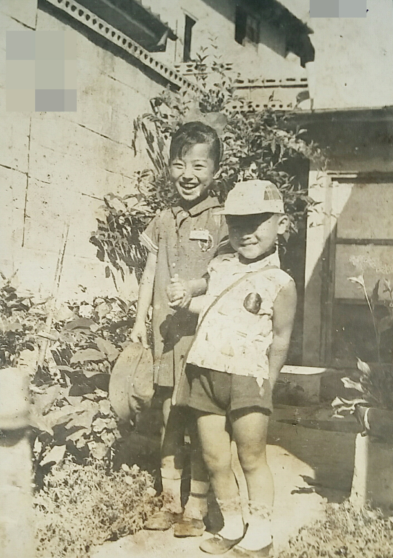 사진) 집 마당에서 찍은 사진. 누님과 내 모습인데, 누님을 안고 있는 분은 누군지 모르겠다.