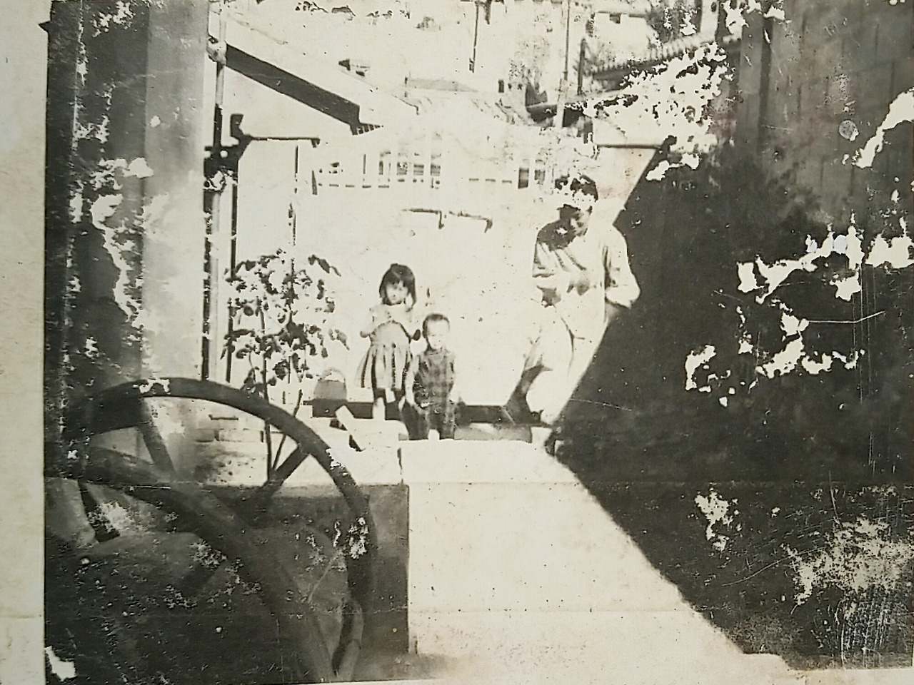 사진) 햇살이 찬란하던 60년대 어느 날 돈암동 집 마당에서 대문을향해 찍은 사진. 중앙에 보이는 아이가 내 모습이고 오른쪽이 어머님, 왼쪽이 누님이다.이 사진에도 좌측에는 아버님께서 수리하시곤 했던 등나무 의자가 보인다.