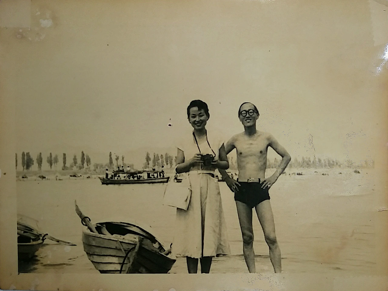 옷을 입은 상태로는 좀처럼 구분이 안되지만 수영복을 입은 모습을 보면 역시 아버님은 엄청 마르셔서바로 옆에 계신 어머님보다도 몸무게가 더 적을 것처럼 보인다. 또한 두 분 키도 거의 비슷해 보이는데 아버님께서 작으신 것이 아니고 어머님께서 그 세대 분들 중에서는 꽤 크신 편이다. 게다가 양장에 맞는 구두까지 신고 사진을 찍으셨을 테니....