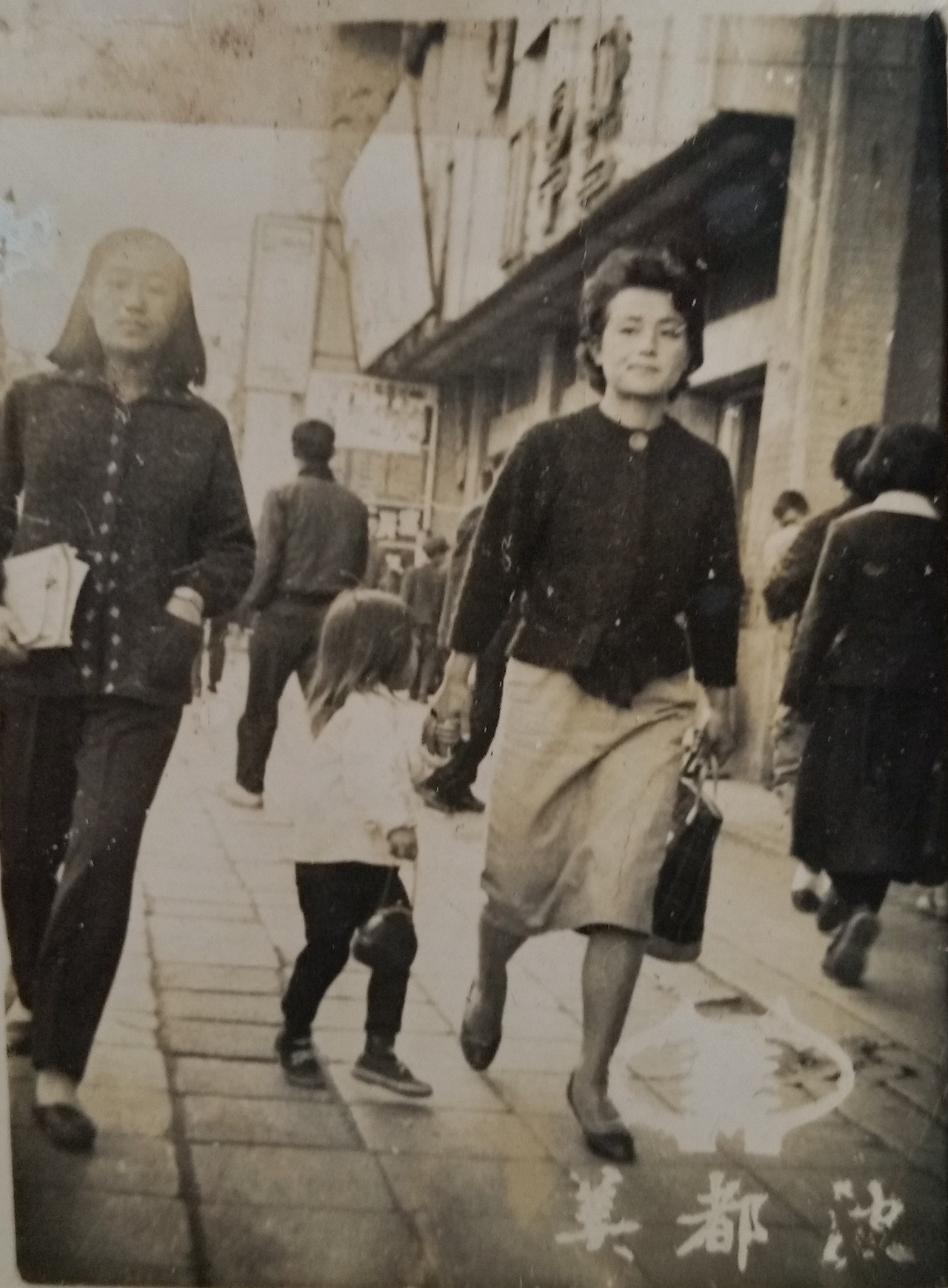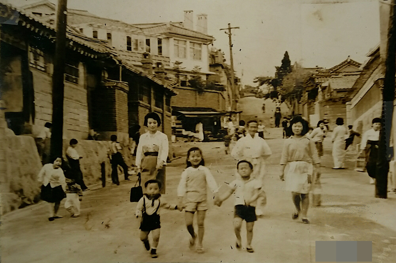 이 사진에 보면 기와집이 꽤 많고 일본풍 건물도 보이는 등 60년대 돈암동 거리의 건물들은 요즘과는 확연하게 차이가 있었던 것 같다. 일행 앞에서 활발하게 걸어가는 아이들이 우리 삼 남매이고 뒤편왼쪽이 어머님, 가운데가 외할머님, 우측은 당시식모라고불렸던 가정부 누님이다. 아버님께서 이 사진을직접 찍으셔서 그런지 사진 속에 아버님 모습은 보이지 않는다.1964~5년 경의 사진으로 보인다.