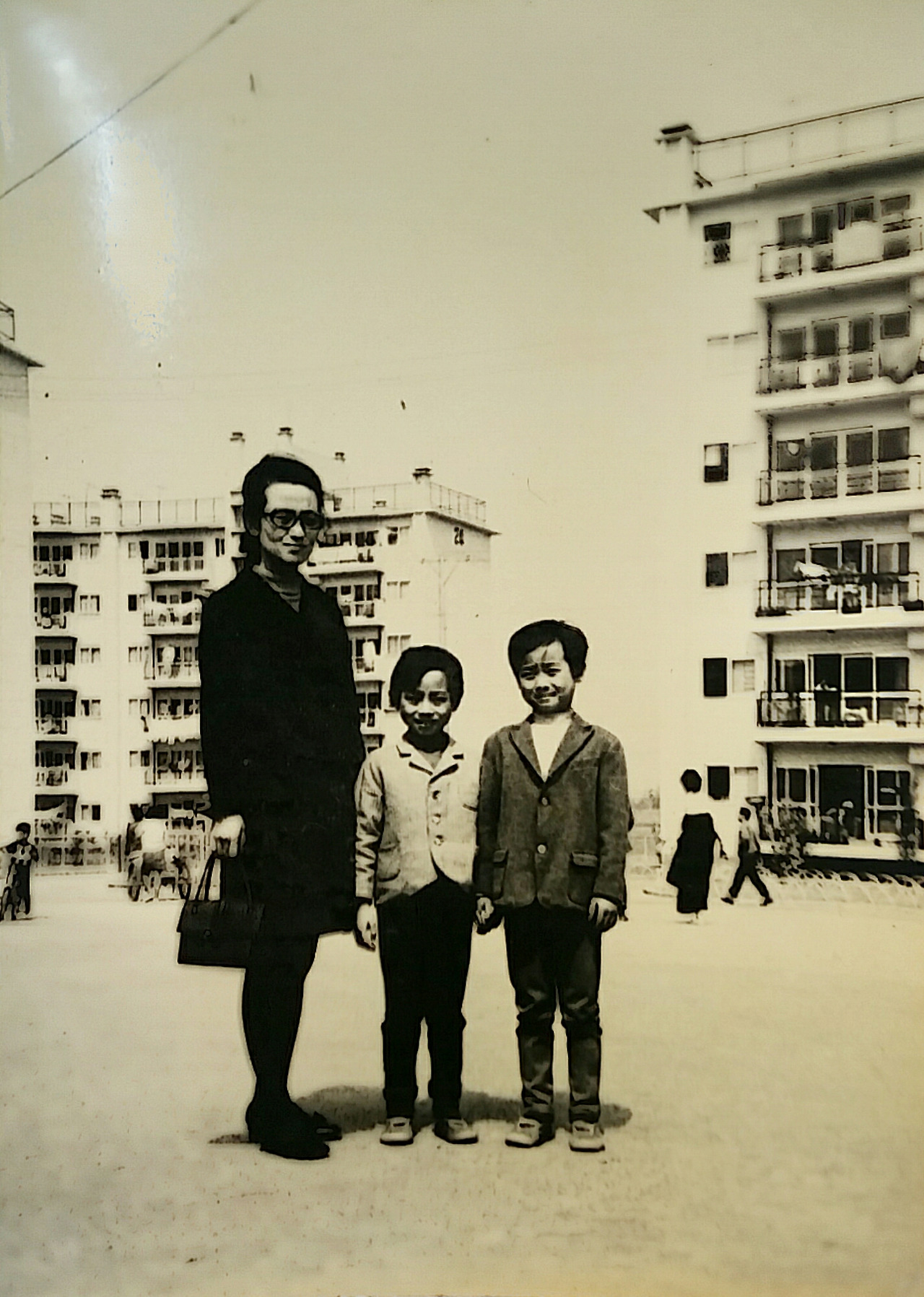 사진) 우리 가족이 한 때 거주했던 공무원 아파트 24동 집 앞에서 어머님 및 동생과 함께 찍은 사진. 동생과 내가 신은 신발이 같은 디자인인데 이제는 촌스러워 보이지만 70년대 그 시절에는 나름 유행하던 디자인이었던 것 기억이 있다.