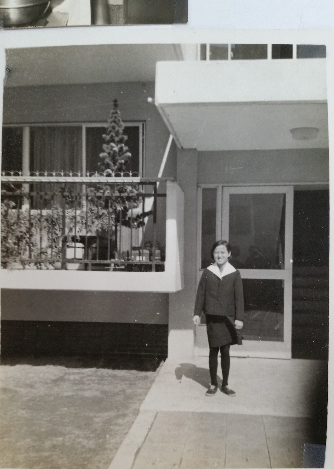 1973~4년경 누님이 중학교에 들어간 직후에 찍은 것으로 보이는 사진도 있다. 우리가 살았던 한강맨션 17동 출입구 앞에서 찍은 사진인데, 누님 독사진 및 어머님과 함께 찍은 사진 두 장이 남아있다. 이제는 60대 중반의 할머님이 되신 누님 또 올해로 92세가 되시는 어머님도 약 50여 년 전에는 이렇게어리거나 젊은 모습이던 시절도 있었던 것이다. 1층 아파트 베란다 끝에 크리스마스트리가보이는것으로 봐서 12월경에 찍은 사진으로 보인다. 70년대 이촌동 한강 맨션 아파트 베란다에 크리스마스트리가장식되어 있는 모습을 회상해 볼 수 있는 사진이다.