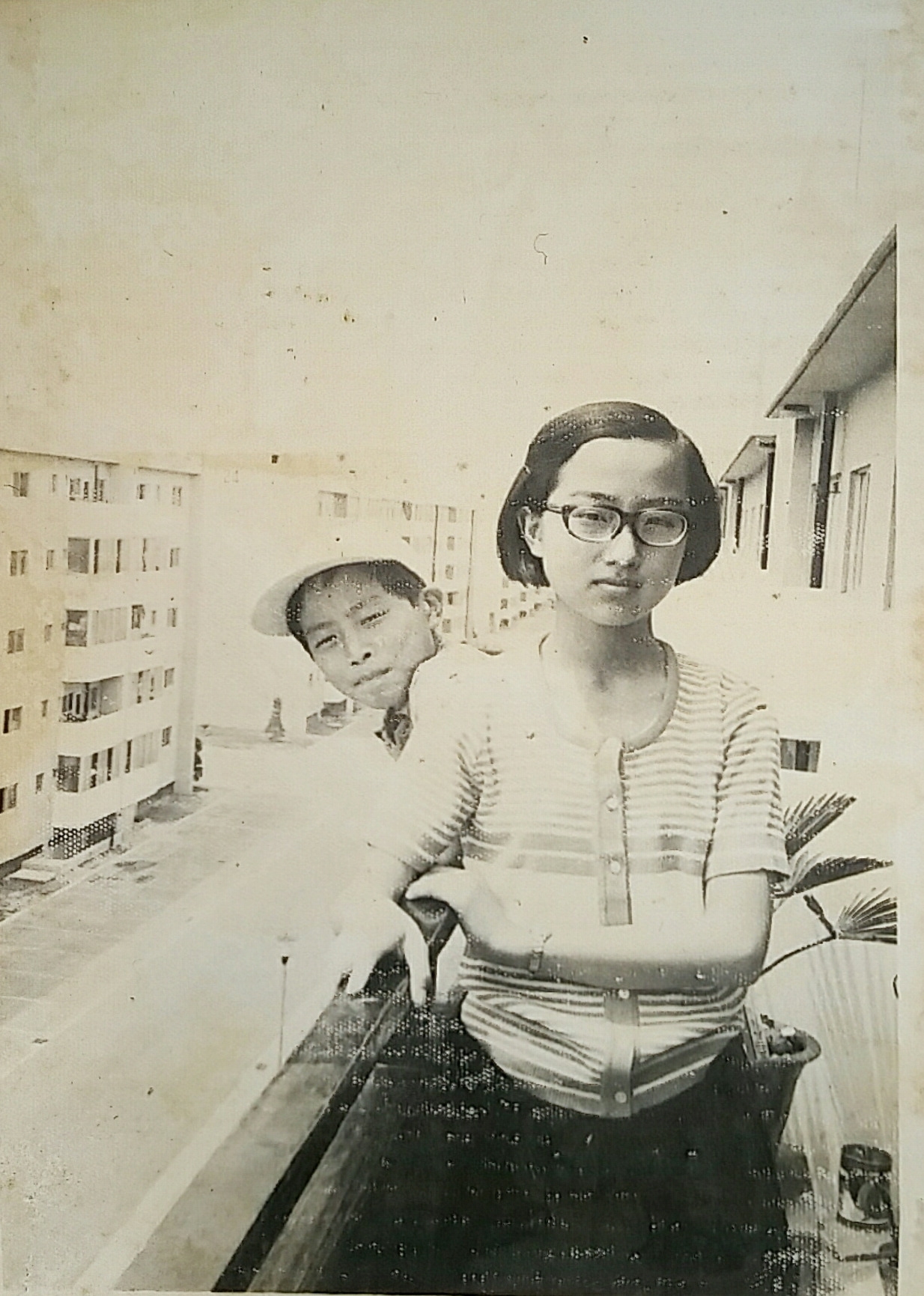 사진) 70년대 한강 맨션 베란다에서 찍은 누님과 동생 사진