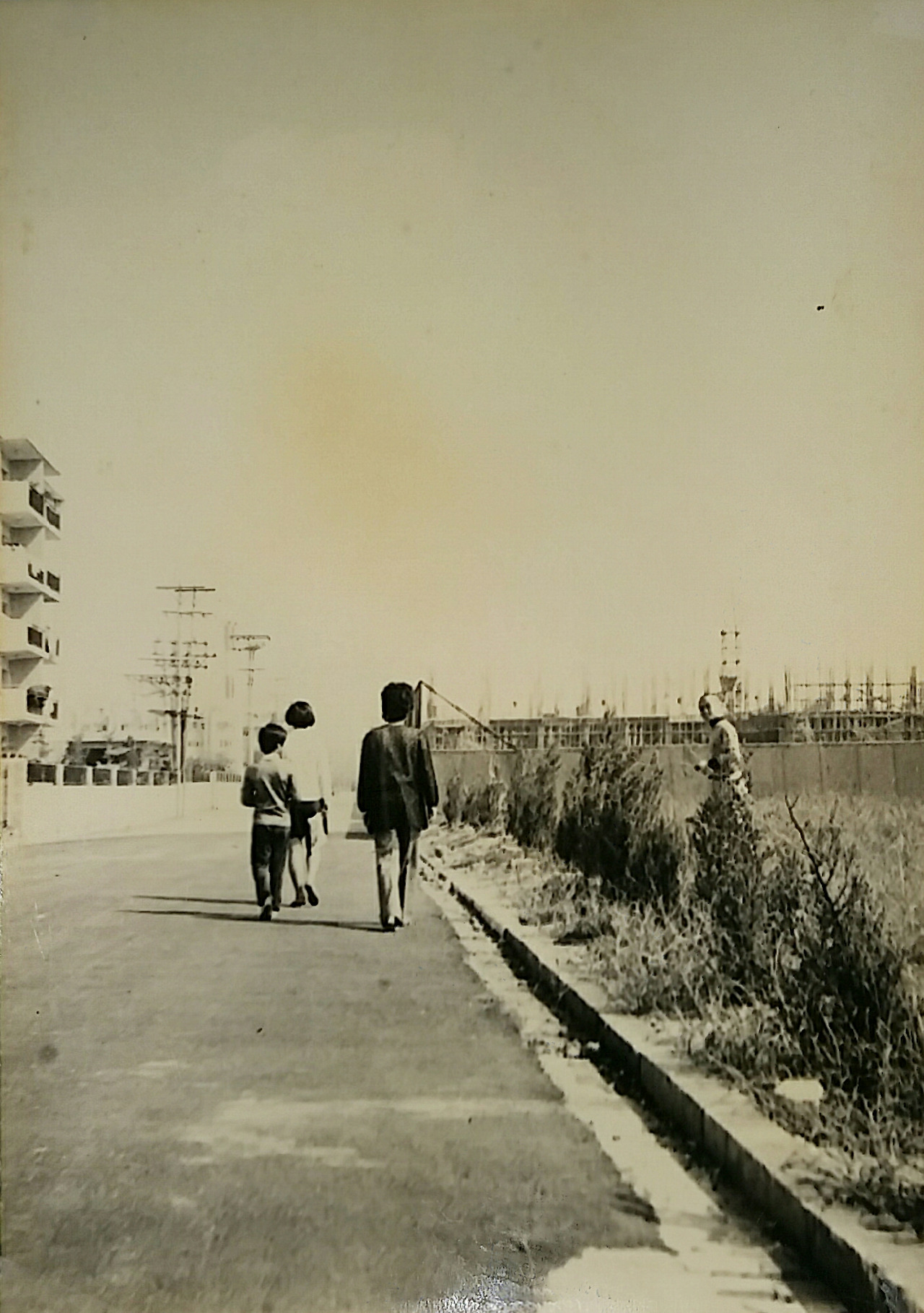 아래 사진도 역시 한강 맨션 인근의그런 공터 주변을 우리 가족이 함께 걸어갈 때 찍은 사진이다. 아마도 휴일에 근처 식당에 가족 모두 식사하러 가면서 찍은 사진 같은데 가족 중 아버님 모습만 안 보이는 것으로 봐서 이 사진도 사진을 꽤 좋아하셨던 아버님께서 찍으신 것 같다. 요즘과는 많이 다른 1975~6년경의 이촌동 모습인데아버님은 2001년에 이미 돌아가셨지만 아버님께서 찍으셨던 이 70년대 이촌동 사진만은 여전히 남아있다.