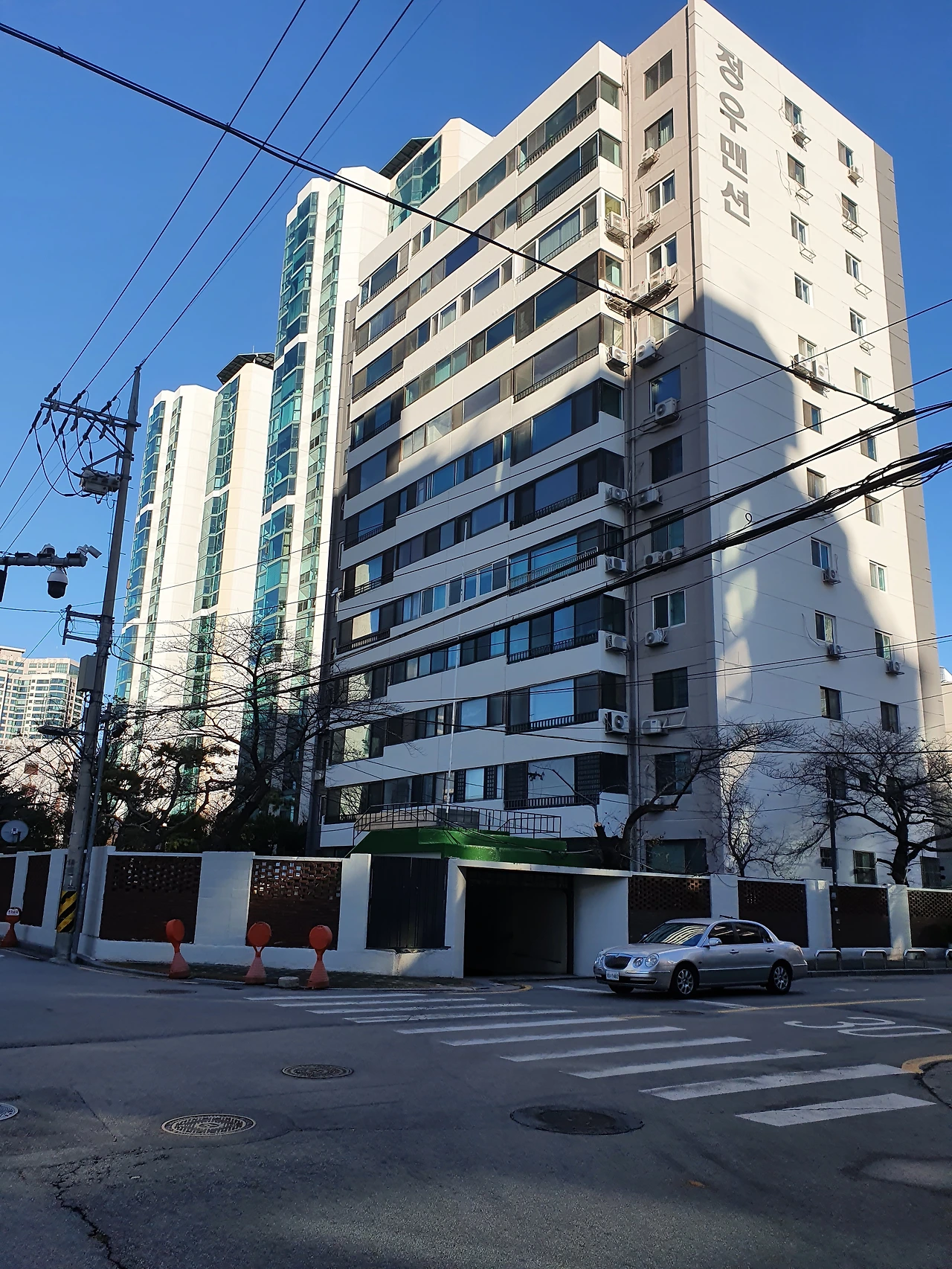 사진) 정우맨션 모습.사진의왼쪽 옆에 있는 아파트가 동부 센트레빌 아파트인데 70년대에는 5층짜리 복지 아파트가 이곳에 있었다. 내가 살던 집도 정우맨션 바로 옆에 있는 저 건물 자리에 있었다.