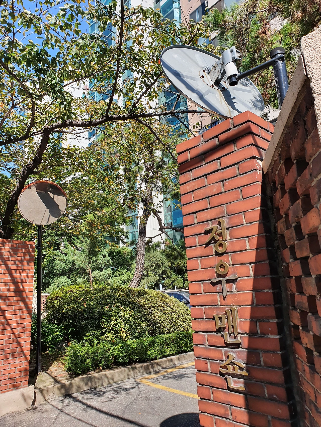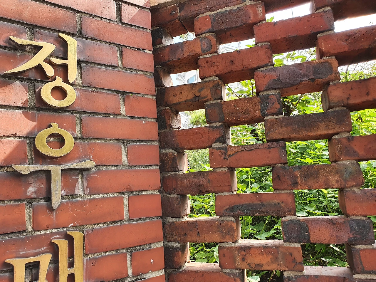 사진) 붉은 벽돌로 만들어진 정우맨션의 오래된 담장 모습. 이촌동에 고풍스러운 분위기와 멋을 더해주는 그런 담장인 것 같다.(2020. 9월)