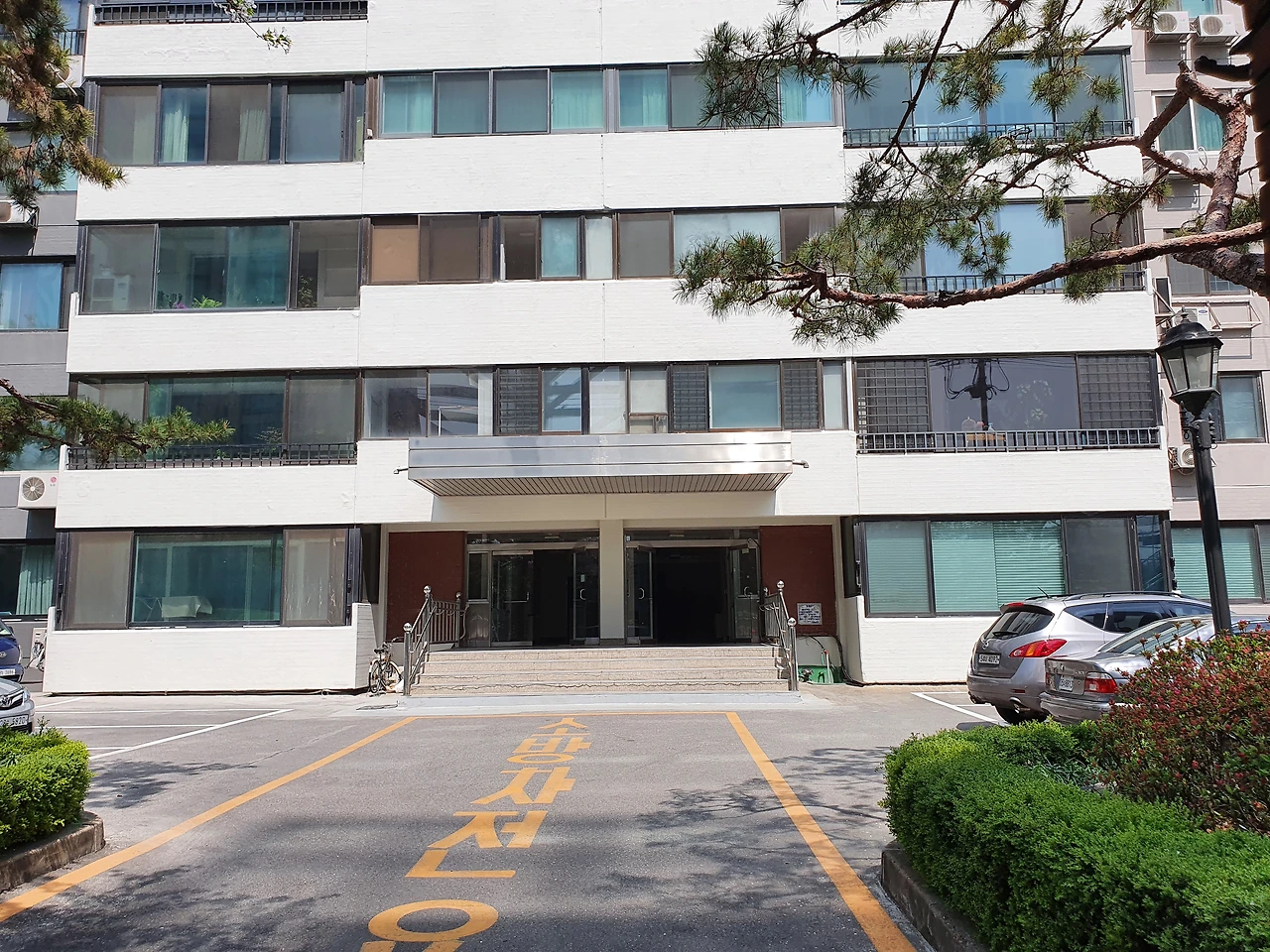 사진) 정우맨션 입구 모습. 1970년대에는 이 입구가 호텔 로비처럼 엄청나게 크고 또 으리으리하게 느껴졌던 기억이 있다. 그렇지만 세월이 흐르면서 낡아서 그런지 이제는 더 이상 그렇게 보이지는 않는 것 같다. (2022. 4월)