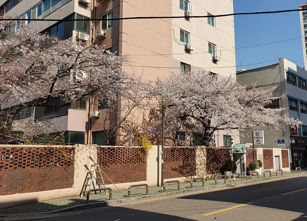 사진) 정우맨션의 벚꽃 나무. 이촌동에서 나름 큰 벚꽃 나무 중 하나일 것 같은데, 매년 봄 너무도 멋진 꽃을 보여준다. 가운데 노란 개나리도 살짝 보인다. (2020. 3월)