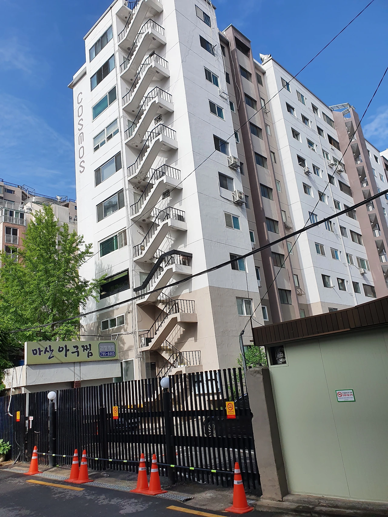 사진) 코스모스 아파트 모습. 마산 아귀찜이라고 적혀있는 간판 바로 아래에서 두 사람 간 주먹싸움이 벌어졌었다.