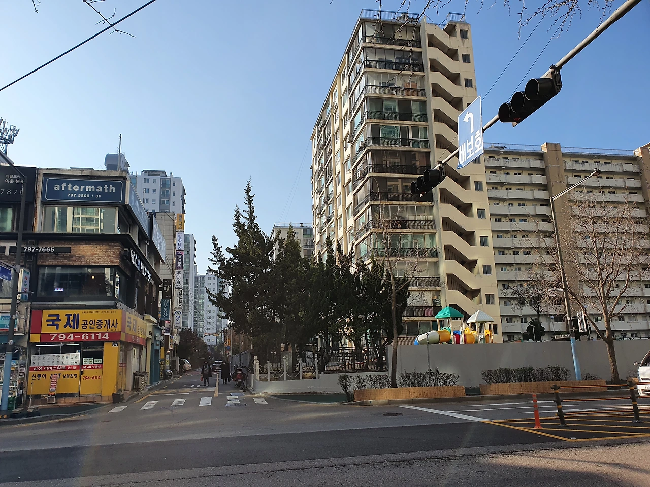 사진) 사진 오른쪽 삼익 아파트가 있는 이 자리에 과거 신용산 중학교가 있었다.