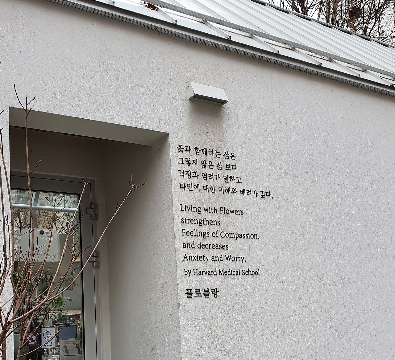 사진) 꽃집 플로블랑 건물과 입구에 적혀있는 문구.