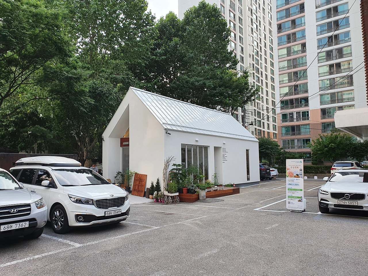 플로블랑이라는 꽃집은 원래 한강 맨션 상가에 있었다. 그런데 2020년 어느 날 이전 공고를 붙이더니 얼마 후 아래 사진에 보이는 것처럼 우리 마트 뒤쪽의 주차장 공간에 독채 건물을 한 채 짓고 그곳으로 이전을 했다.