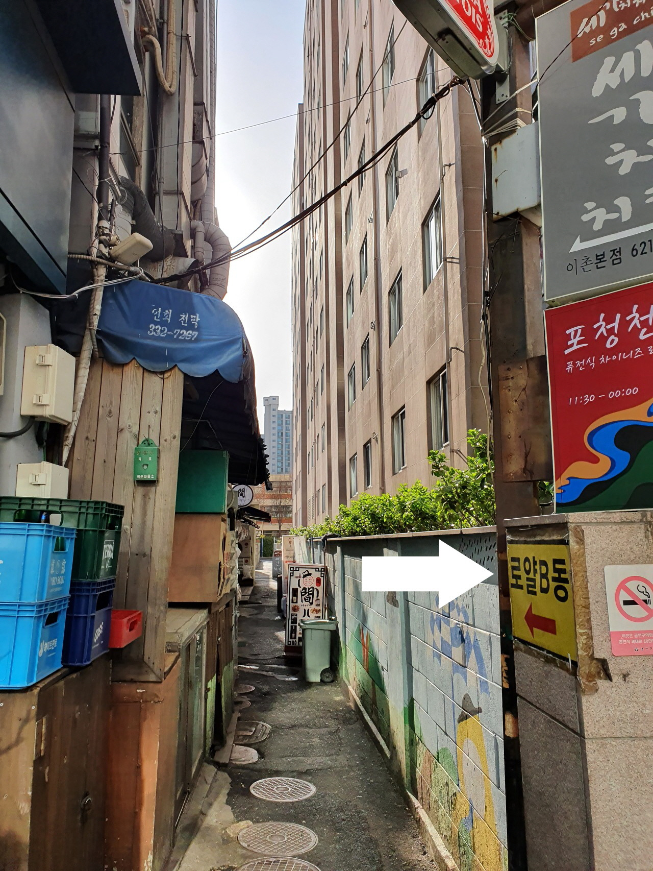 사진) 과거 냄비우동을 하던 식당이 있던 공간. 70년대 허름한 식당 모습은 흔적도 없이 사라졌고 멋진 빵집이 대신 들어서 있다.