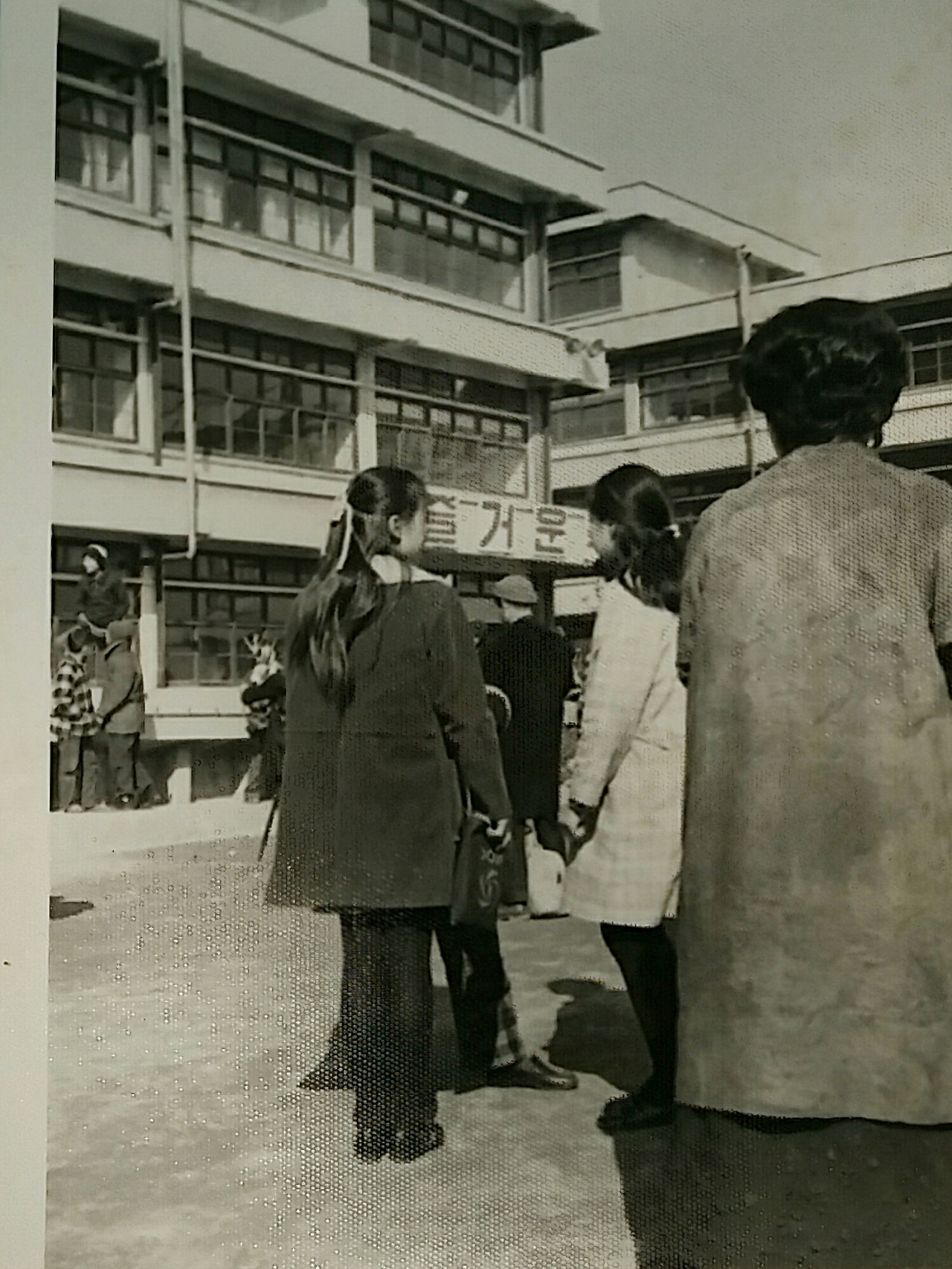 사진) 70년대 신용산 초등학교 졸업식 모습. 1972년 10대의 나이에 신용산 초등학교 운동장에서 이렇게 졸업 사진을 찍던 누님은 50여 년의 세월이 흐른 이제는60대 중반 할머님이 되었다.