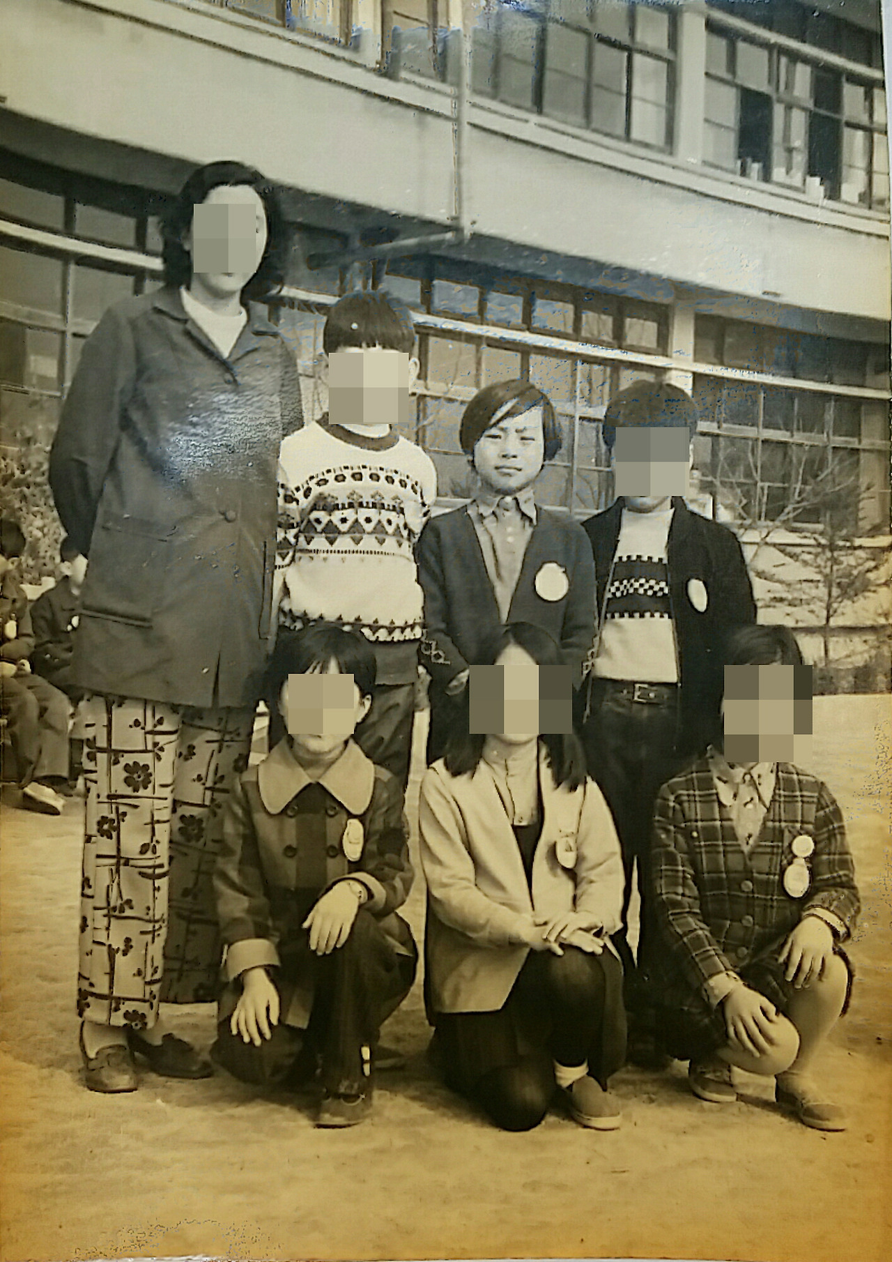 사진) 조회가 끝나고 담임 선생님 및 학급 간부들과 함께 찍은 사진. 동생 왼쪽의 키 큰 친구는 신용산 초등학교 야구부 선수로 1루수였다. 70년대 신용산 초등학교에 다니던 아이들 모습이다.