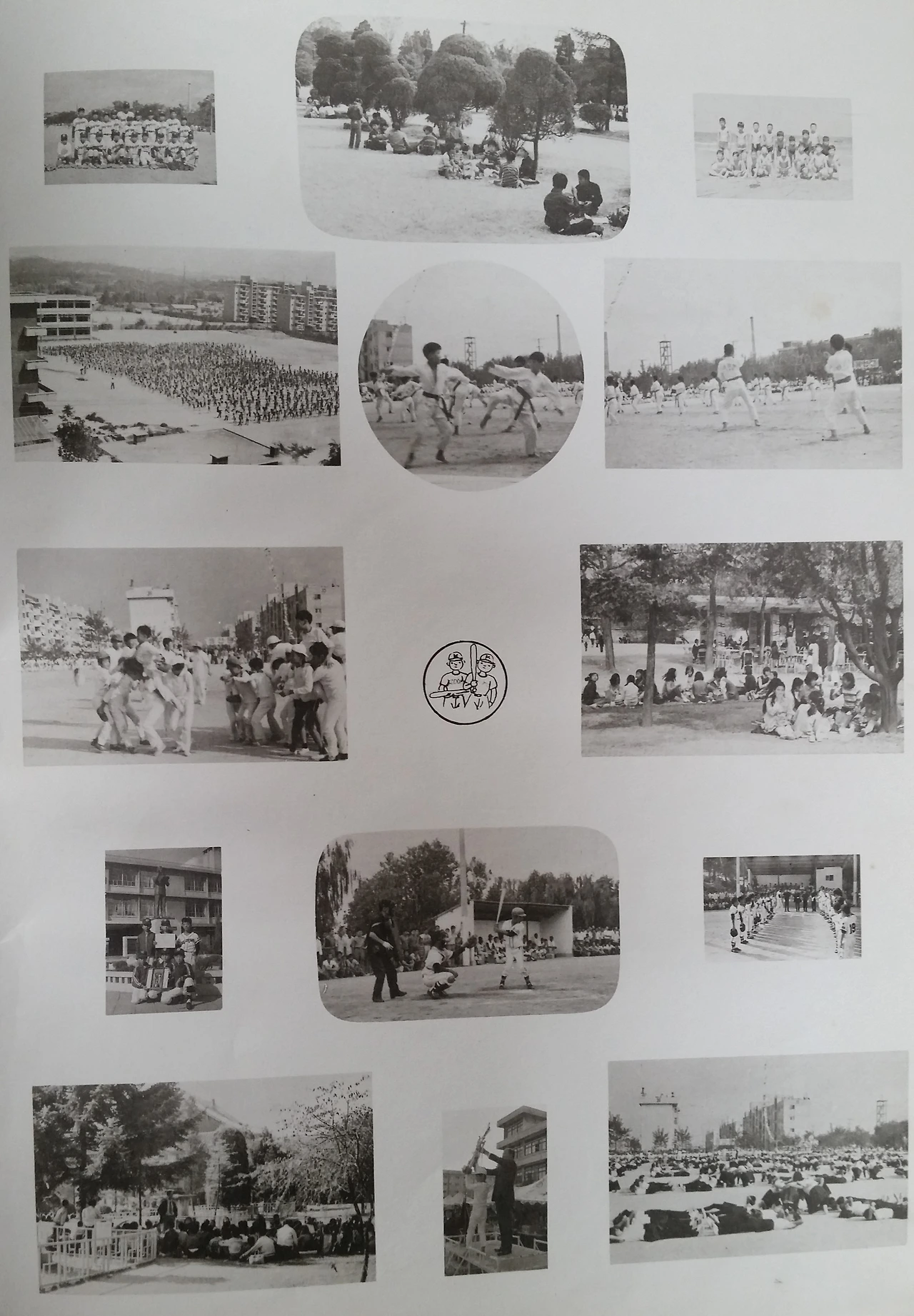 사진) 졸업 앨범에 실린 70년대 신용산초등학교 학생들 모습. 조회하는 모습도 보이고 또 학교 운동장 주변으로 이제는 사라진 5층짜리 공무원 아파트 모습도 보인다.