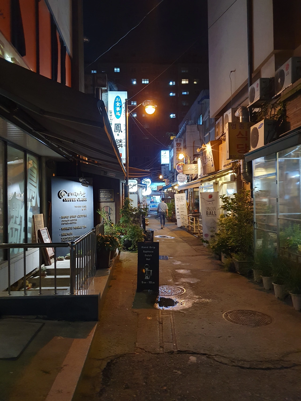 사진) 이촌 시장 안의 비좁은 골목을 비추는 노란색 전등이 무척 복고적인 느낌이다. (2016. 8월)