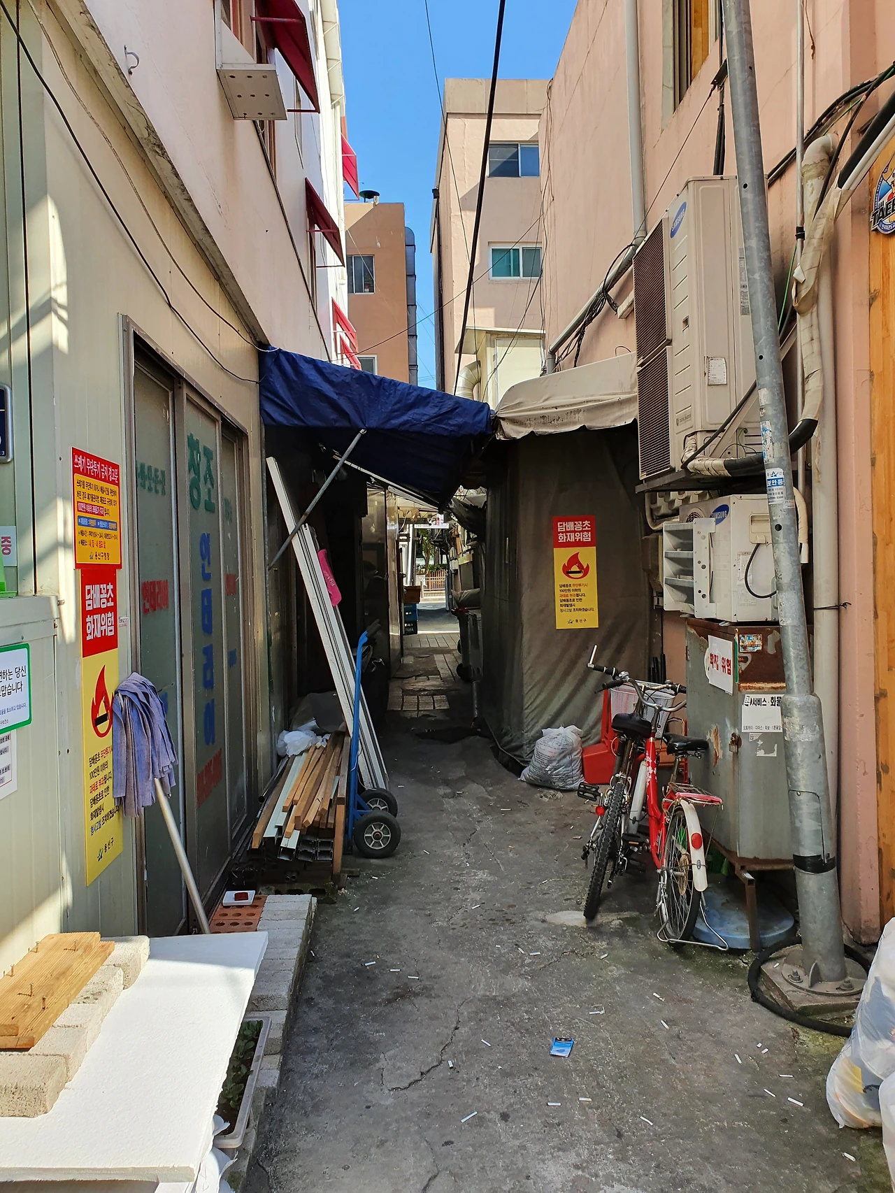 사진) 또 다른 이촌 시장 뒷골목 모습. 부끄러운 모습이지만 바닥에는 담배꽁초가 가득하다. (2020. 9월)