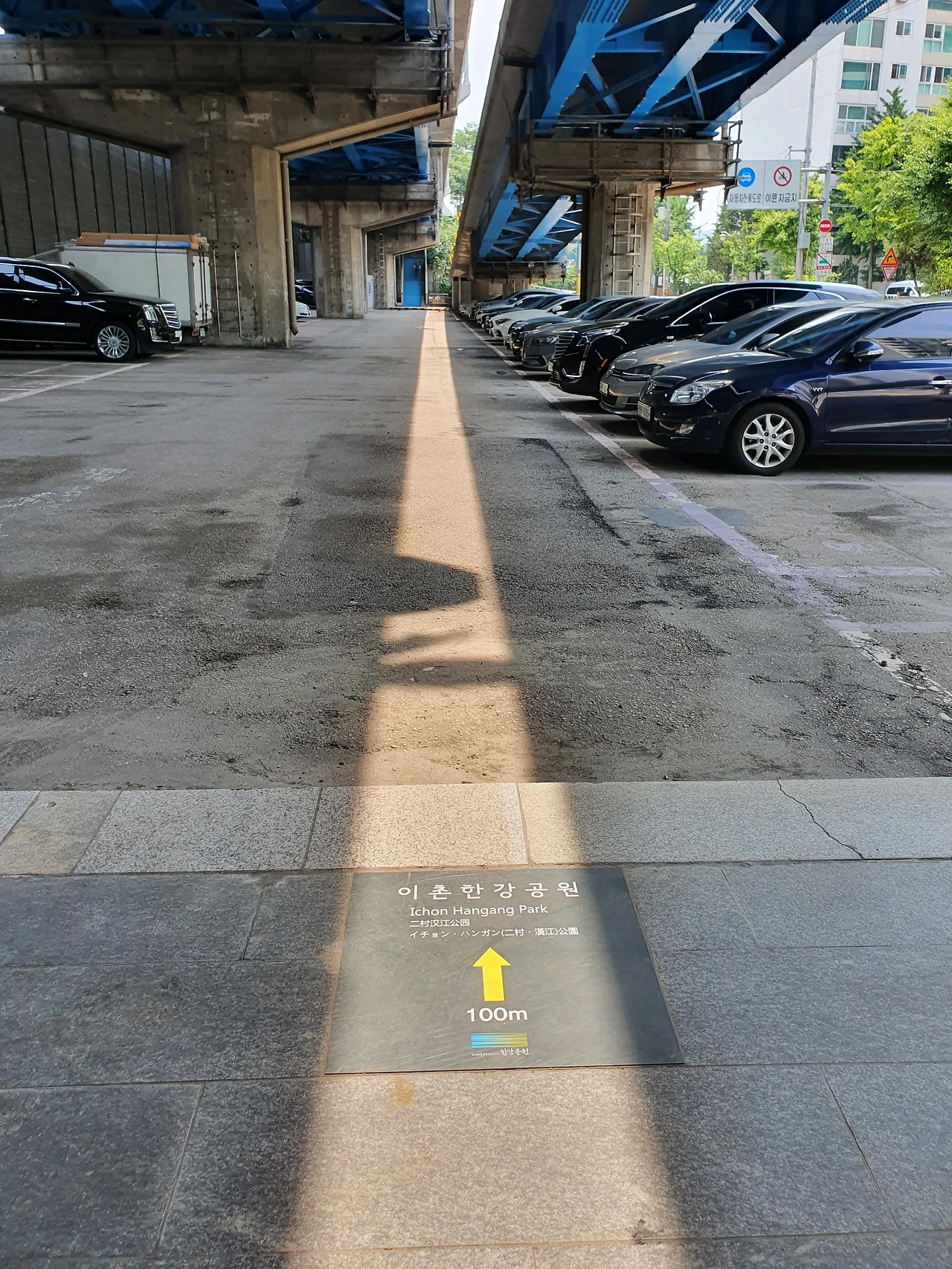 신동아 쇼핑센터를 갈 때는 이 지하도를 통해 가는데, 어느 날 하루는 이 길을 걷다 보니 지하도 근처에 광선검 같은 찬란한 햇살이 땅을 가르고 있는 것이 보였다. 둘러보니 그 햇살은 바로 지하도 위에 있는 동작 대교 좁은 틈 사이로 내리쬐고 있는 햇살이었는데 햇살이 길게 내리쬐는 이 부분이 바로 이촌동의 동쪽 끝 경계선이었다.