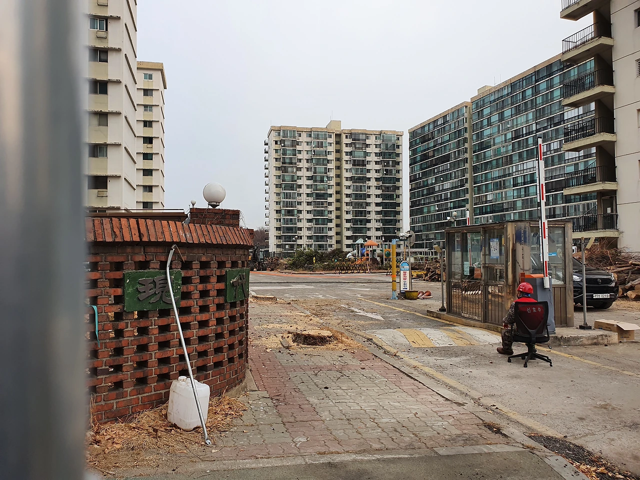 사진) 공사가 진행 중인 2022. 2월 현재 현대 아파트 모습. 그 많던 나무들이 모두 잘려나가고 단 한 그루도 남아있지 않다.