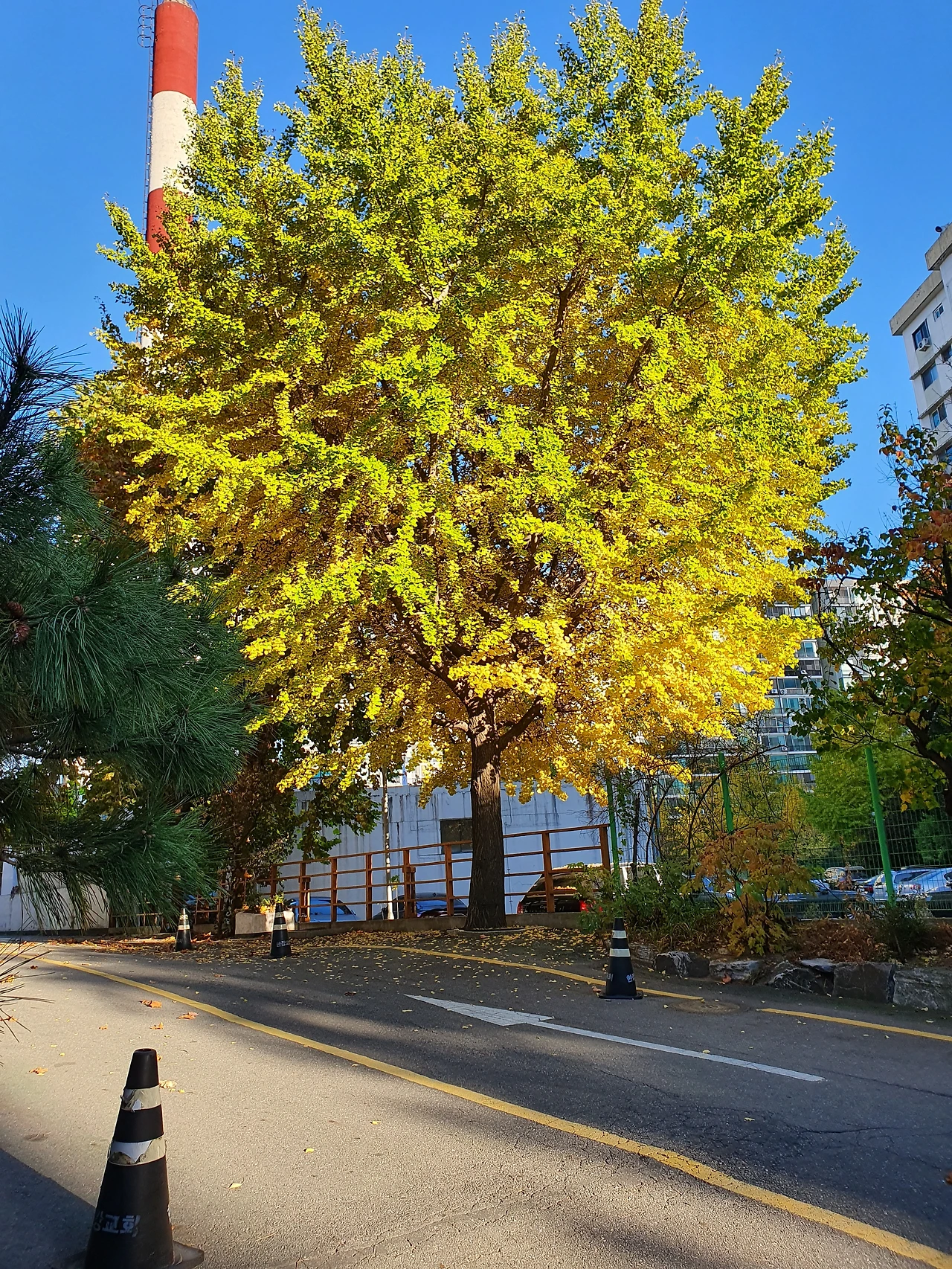 사진) 이촌 아파트 107동 앞 은행나무. 햇살 속에서 빛나는 황금색이 유난히 짙다. (2020. 11월)
