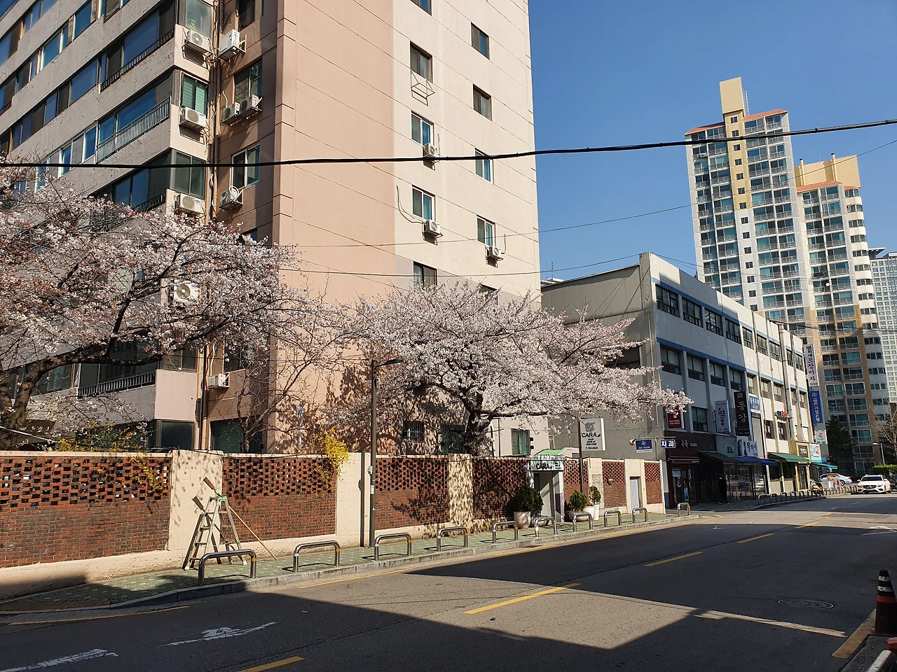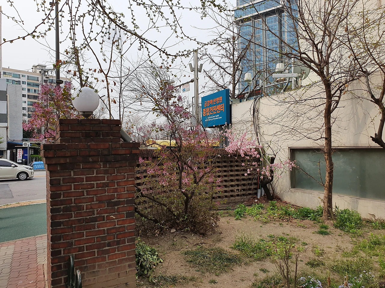 너무 작아서 오히려 애정이 끌리는 벚꽃도 이촌동에 있다. 바로 아래 사진의 벚꽃인데 금강 병원 맞은편 현대 아파트 도로변 담 안 구석에서 조용히 꽃 피고 있는 벚꽃이다.