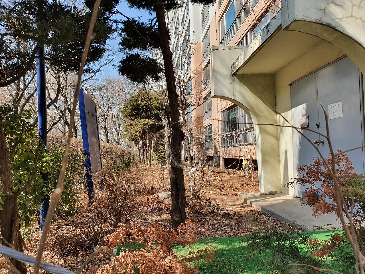 사진) 같은 장소 2022. 2월 사진. 아직은 진달래 꽃이 피기 전이다. 진달래 꽃이 피면 이 삭막한 공간도 아름다운 보라색 진달래가 있는 공간으로 다시 화려하게 변신할 것이다.